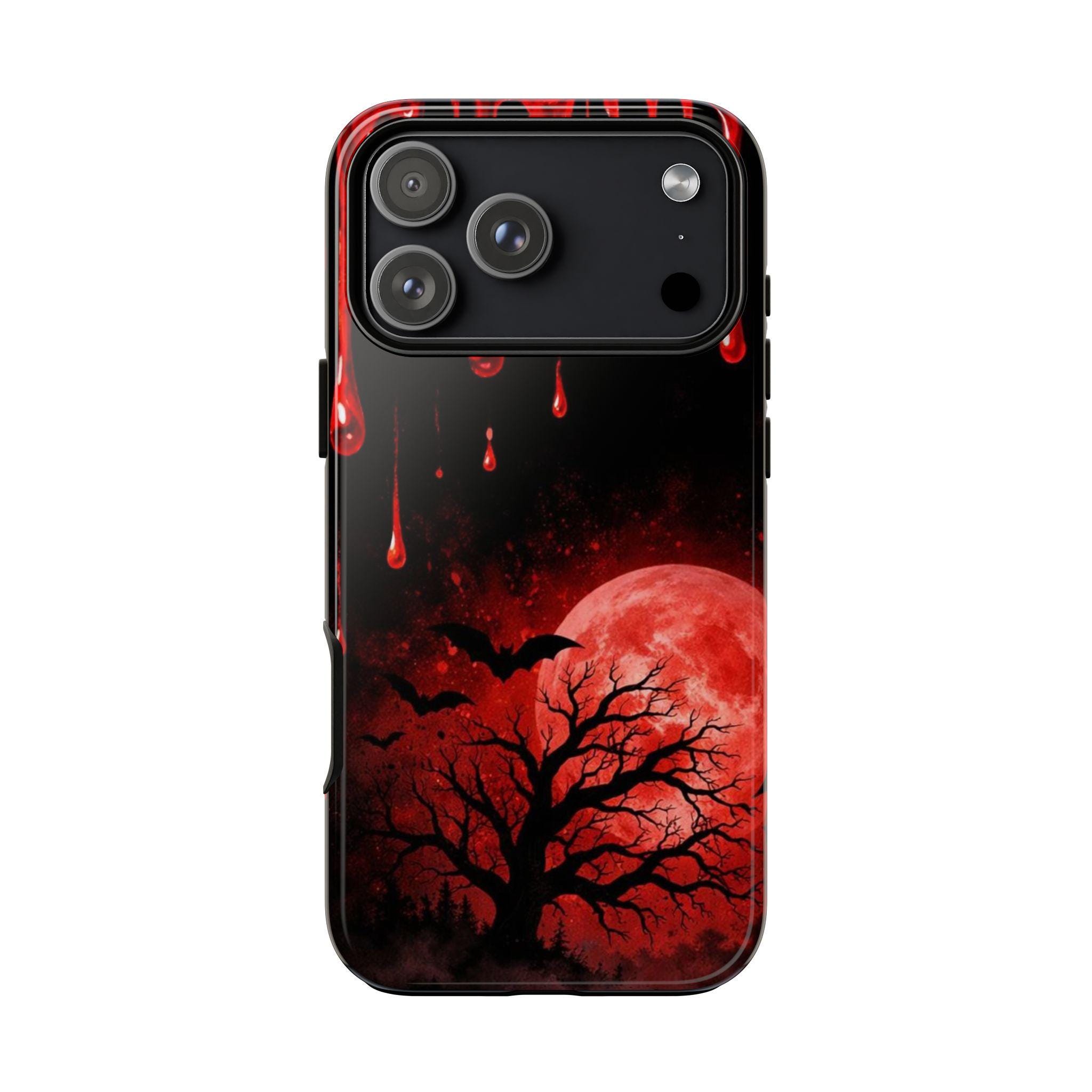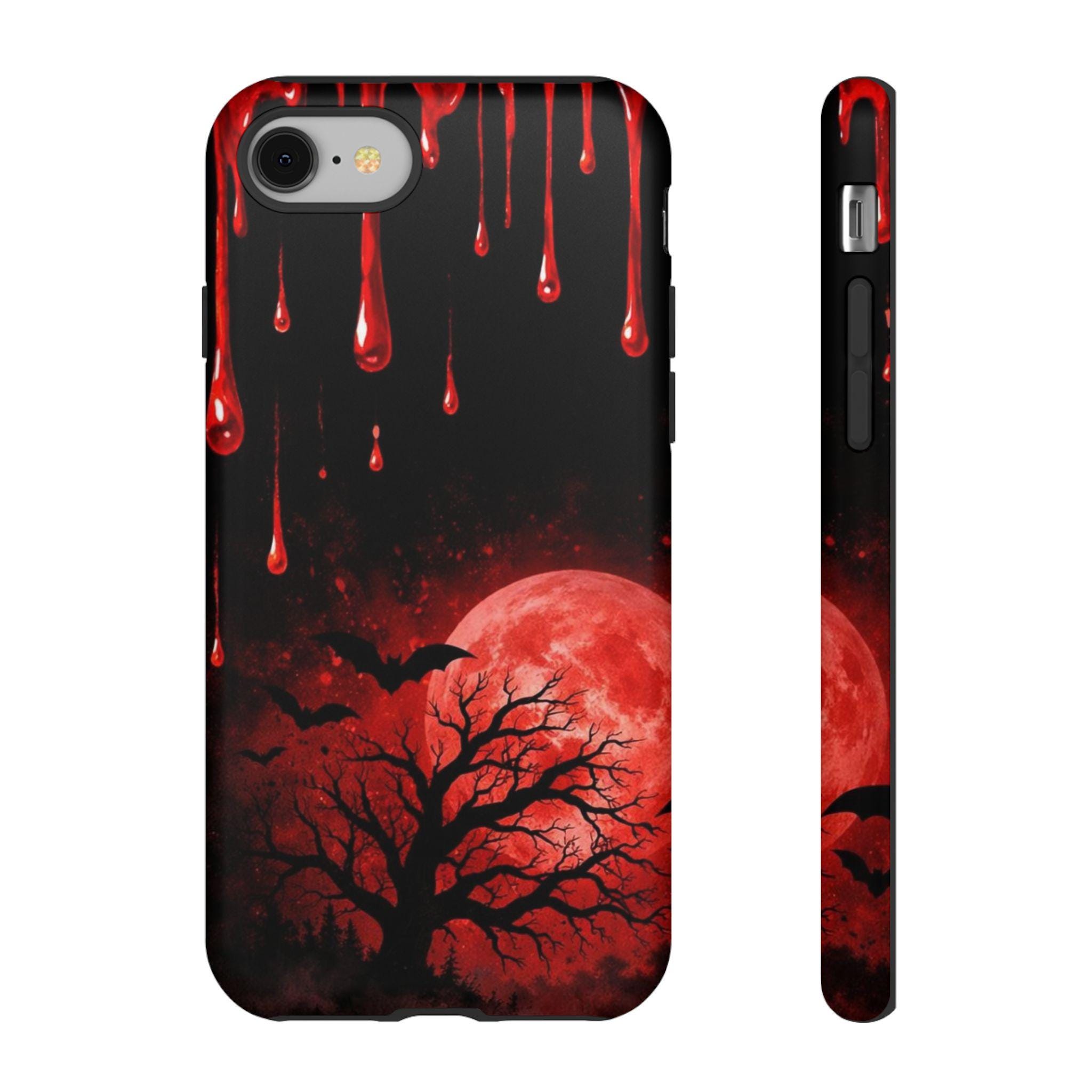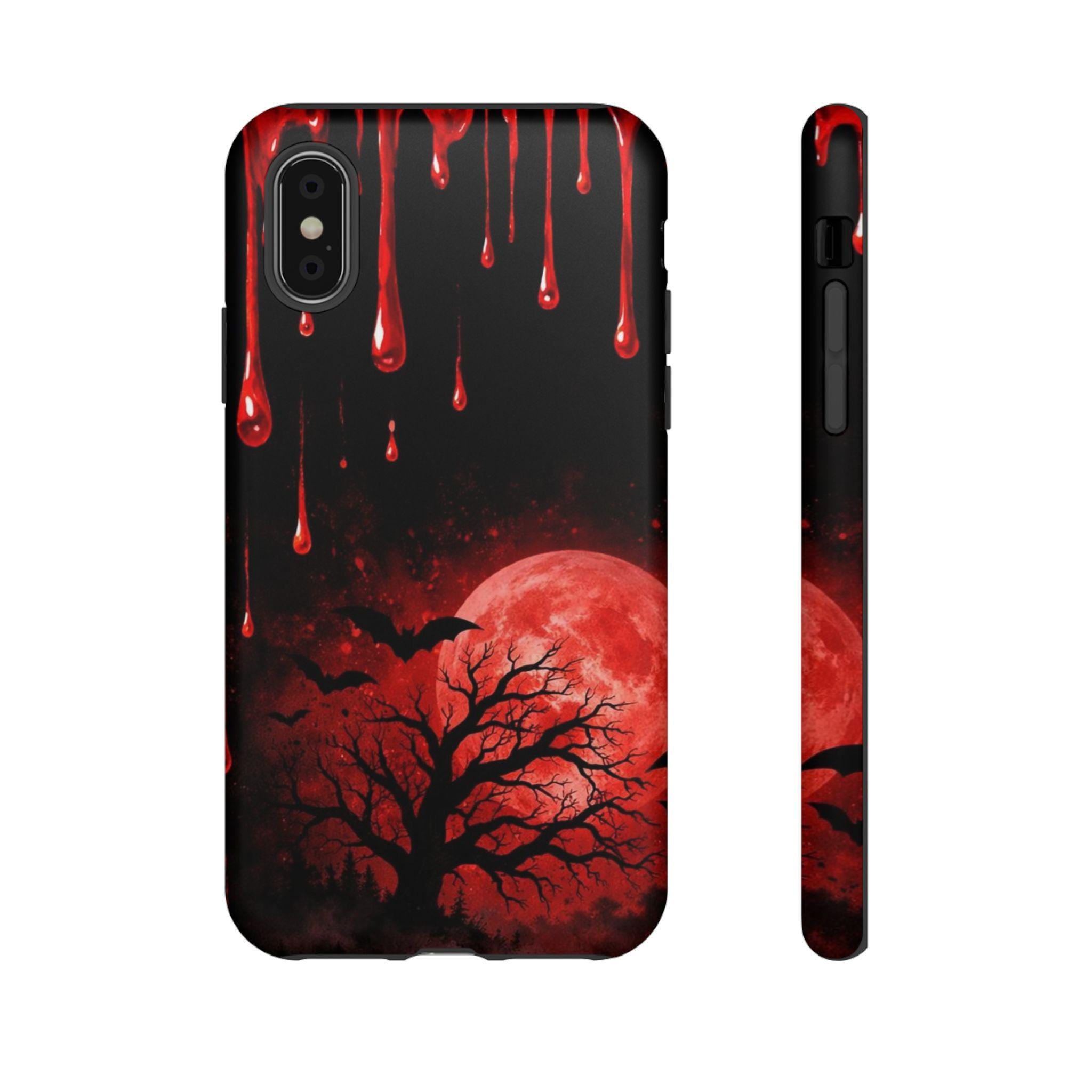 A glowing red blood moon rises behind twisted branches, while bats circle beneath dripping scarlet drops. This case is made for those who embrace dark romance, gothic aesthetics, and mysterious power.
