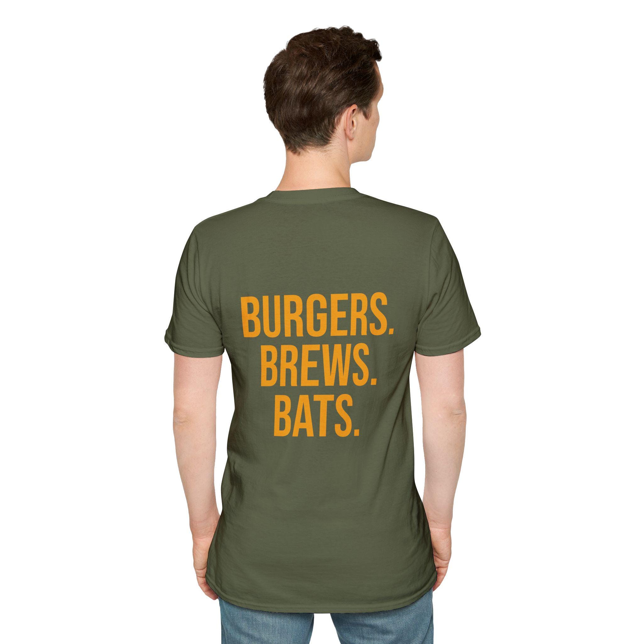 Night falls, the grill glows, and laughter mixes with the hiss of searing patties. This lightweight tee wears like a backyard anthem — bold art up front shows a playful, gothic cookout scene while the back shouts the rallying cry: "BURGERS. BREWS. BATS." It's for people who love smoky flavor, late-night beer runs, and a little Halloween mischief any time of the year. Soft, breathable cotton and a classic crew cut keep the focus on the design and the moment: a casual gathering with friends, a brisk evening cookout, or a themed party where the mood is equal parts cheeky and cozy. Let the shirt do the talking while you man the grill, crack open a cold one, and trade stories under string lights and a crescent moon.