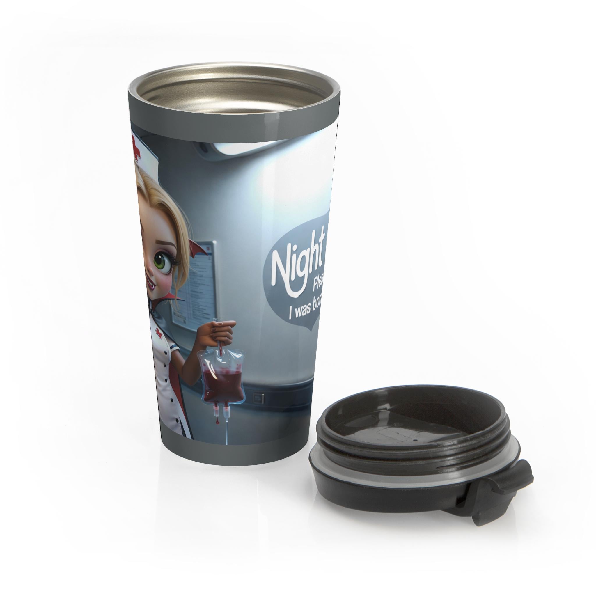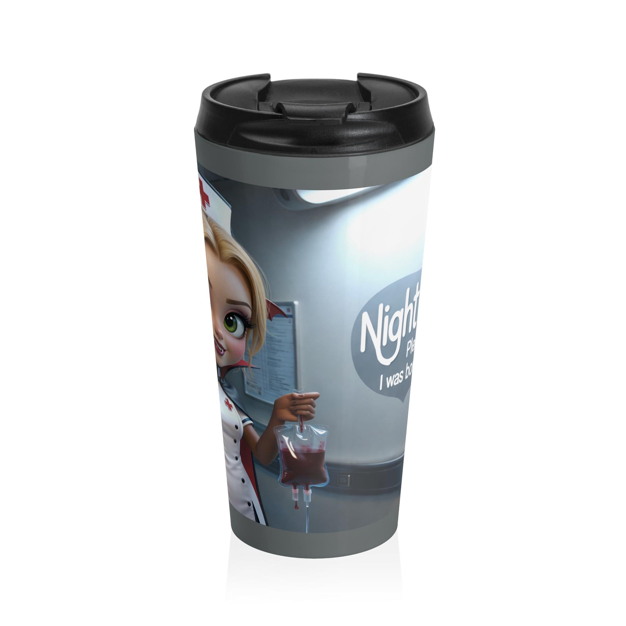 This stainless steel travel mug features a cute vampire nurse illustration, blending gothic charm with practical everyday use. Designed for nurses, medical staff, and night shifters who need their caffeine on the move — without spills, leaks, or losing heat.