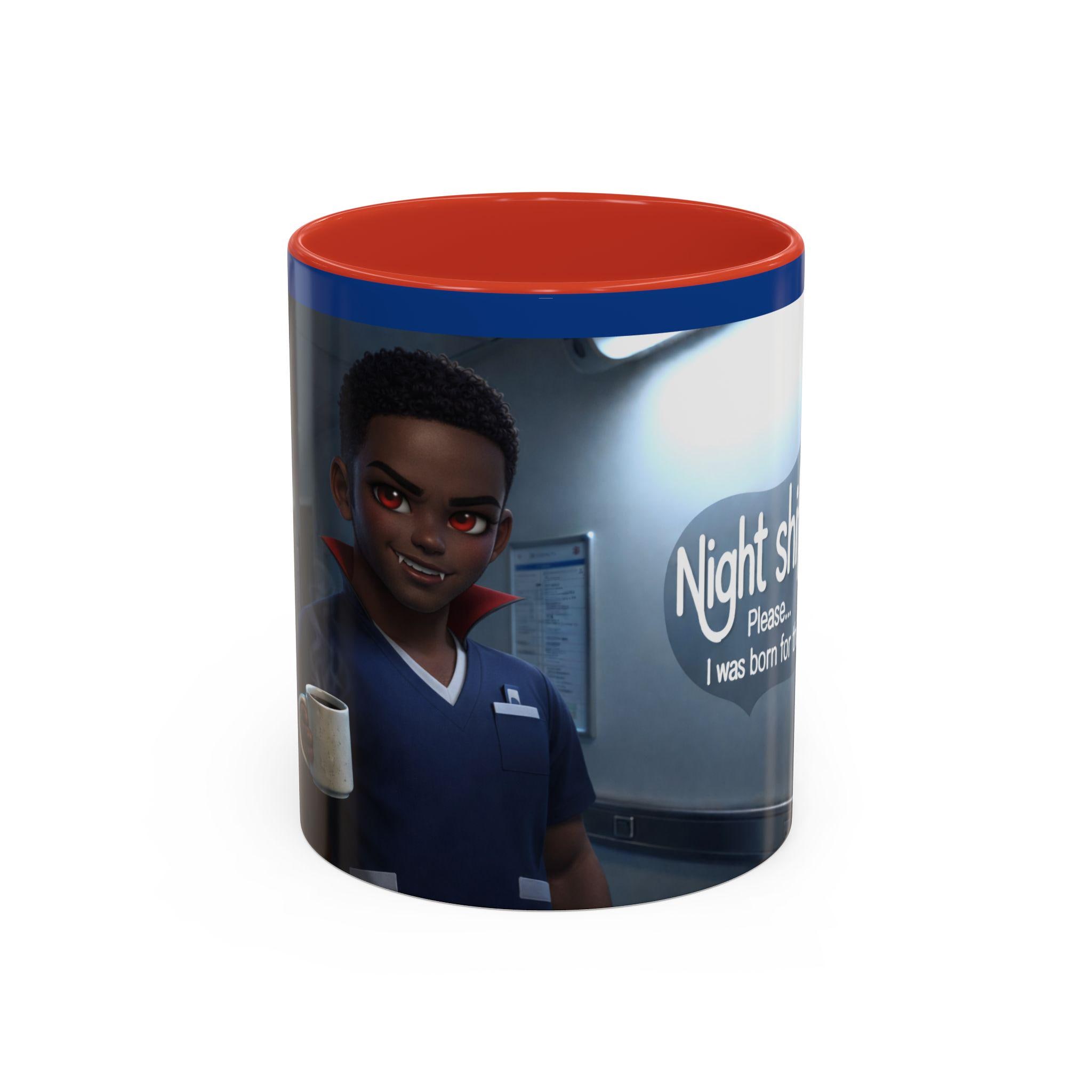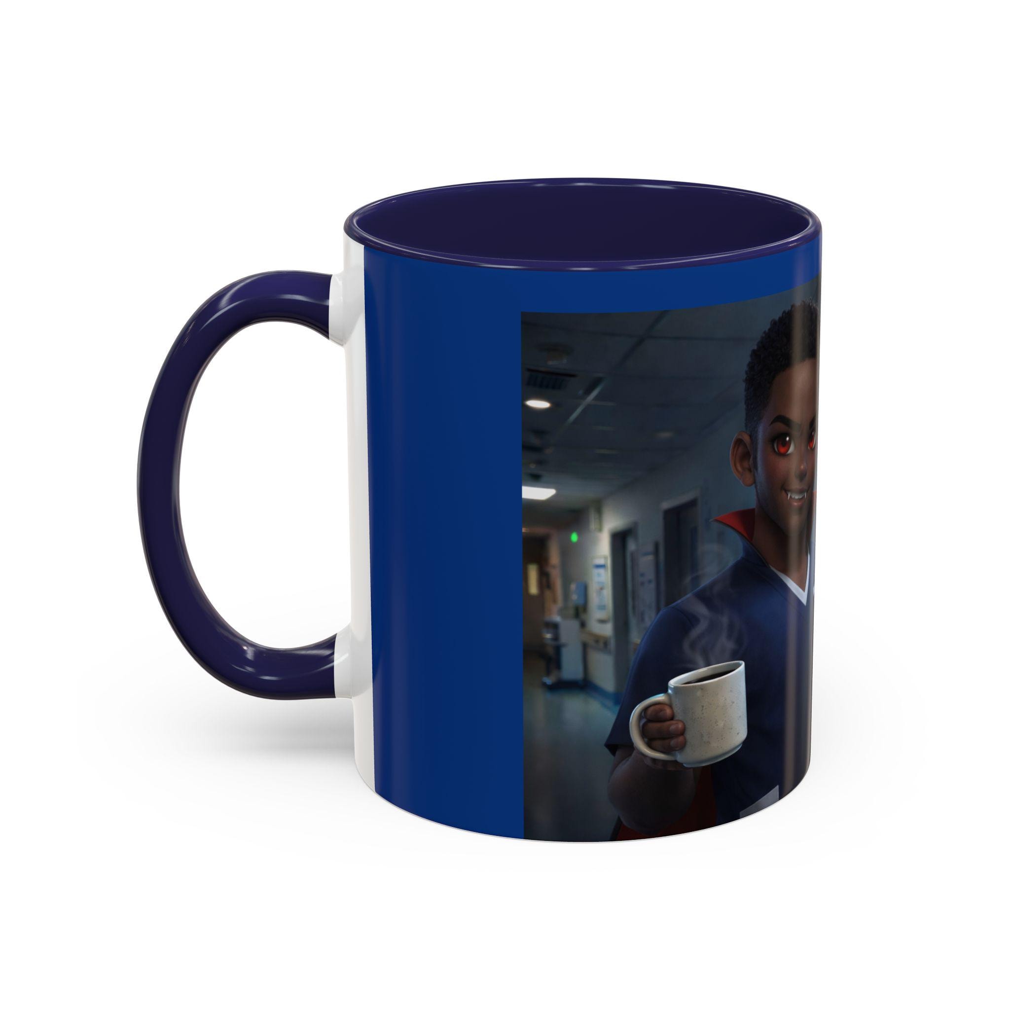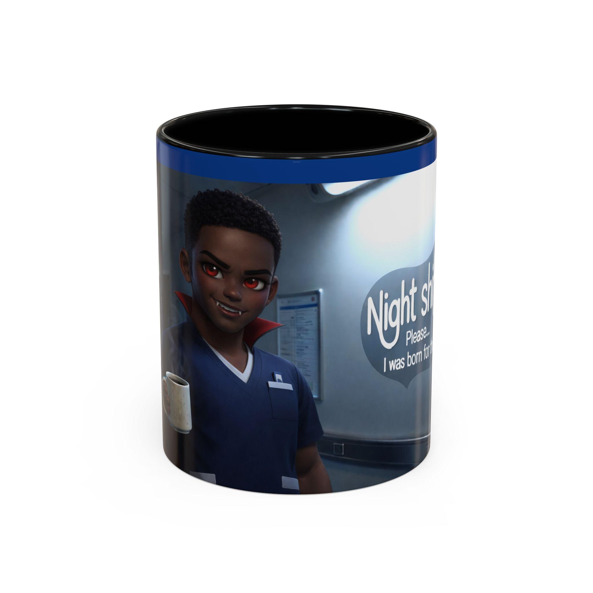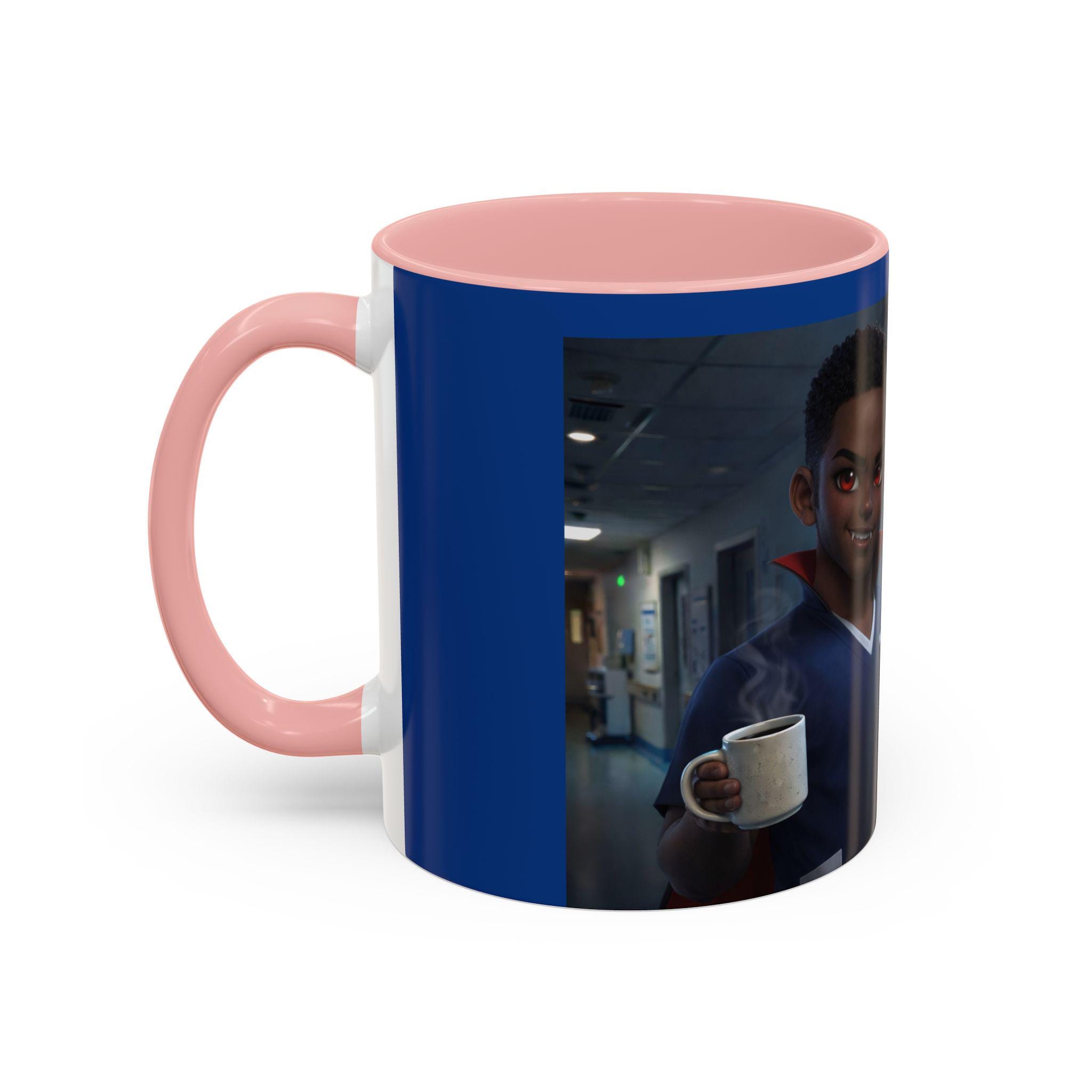 This accent mug features a male vampire nurse, stylishly exhausted and confidently ready to take on another long night. With subtle gothic charm, fangs, and that signature night-shift attitude, this mug is perfect for anyone surviving late hours in the medical world.