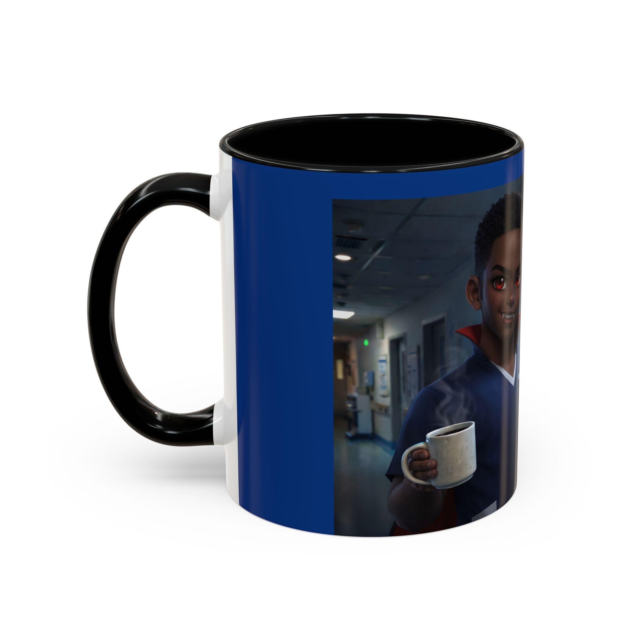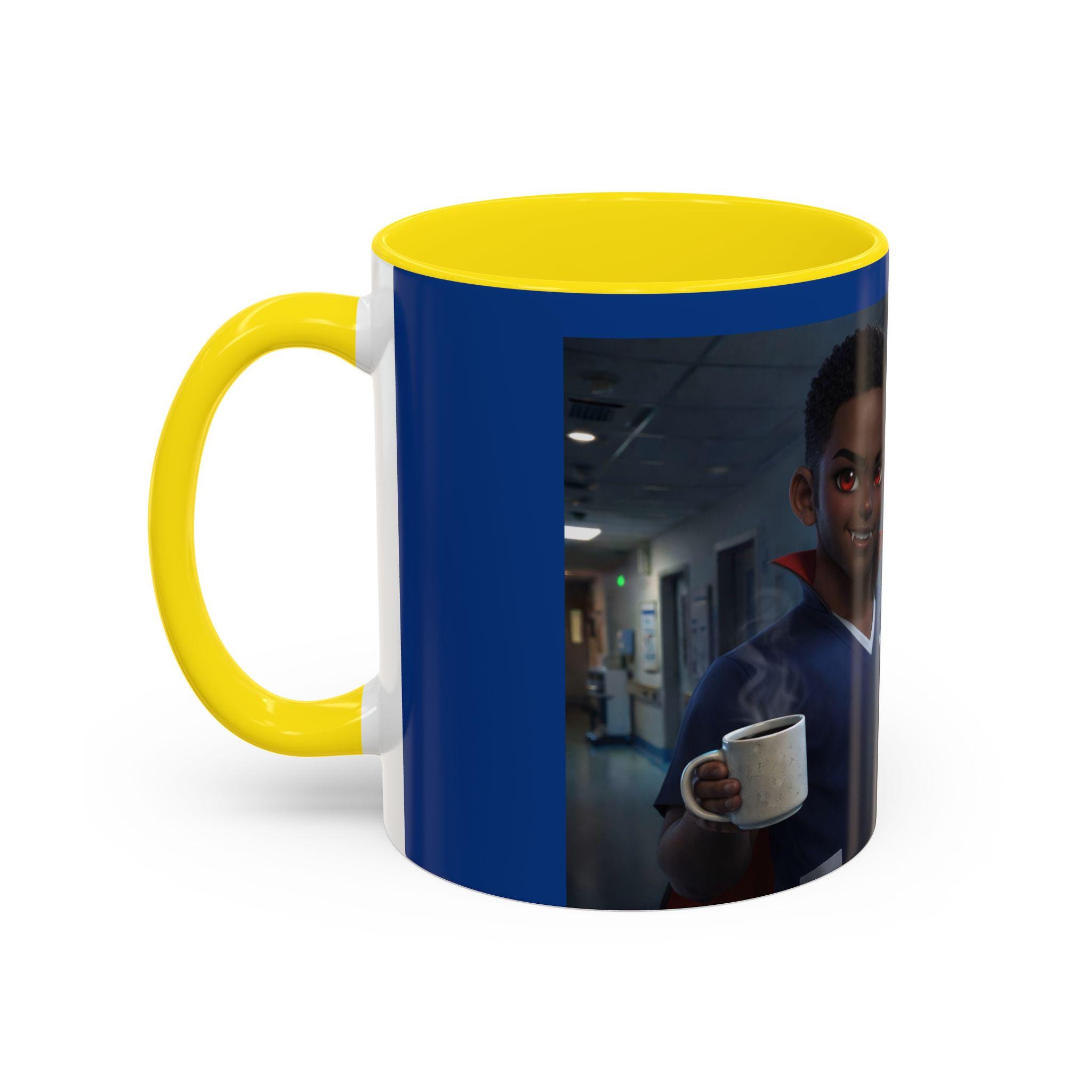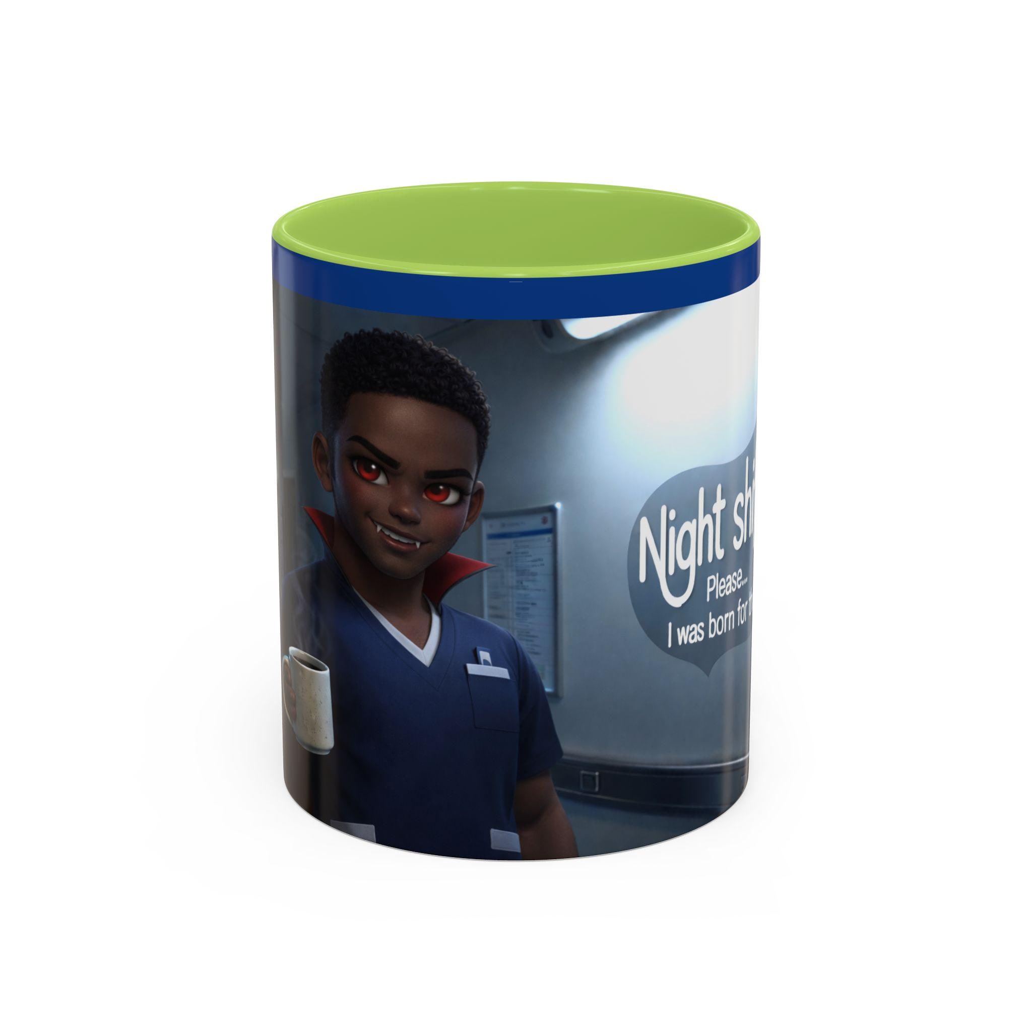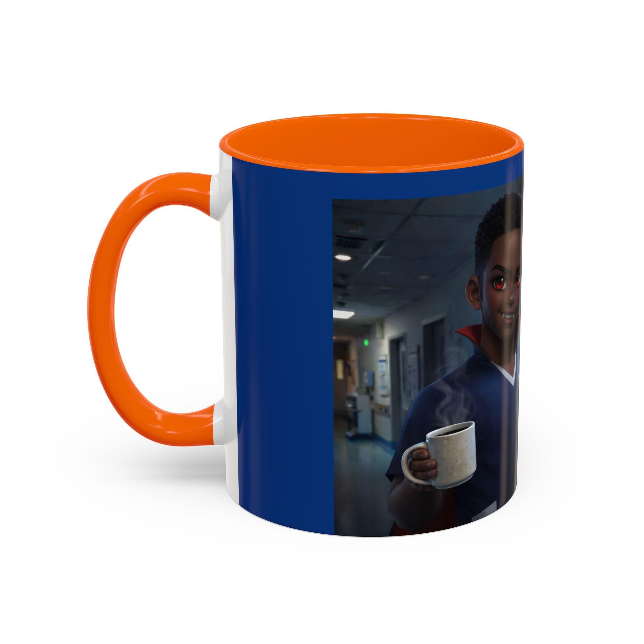 This accent mug features a male vampire nurse, stylishly exhausted and confidently ready to take on another long night. With subtle gothic charm, fangs, and that signature night-shift attitude, this mug is perfect for anyone surviving late hours in the medical world.