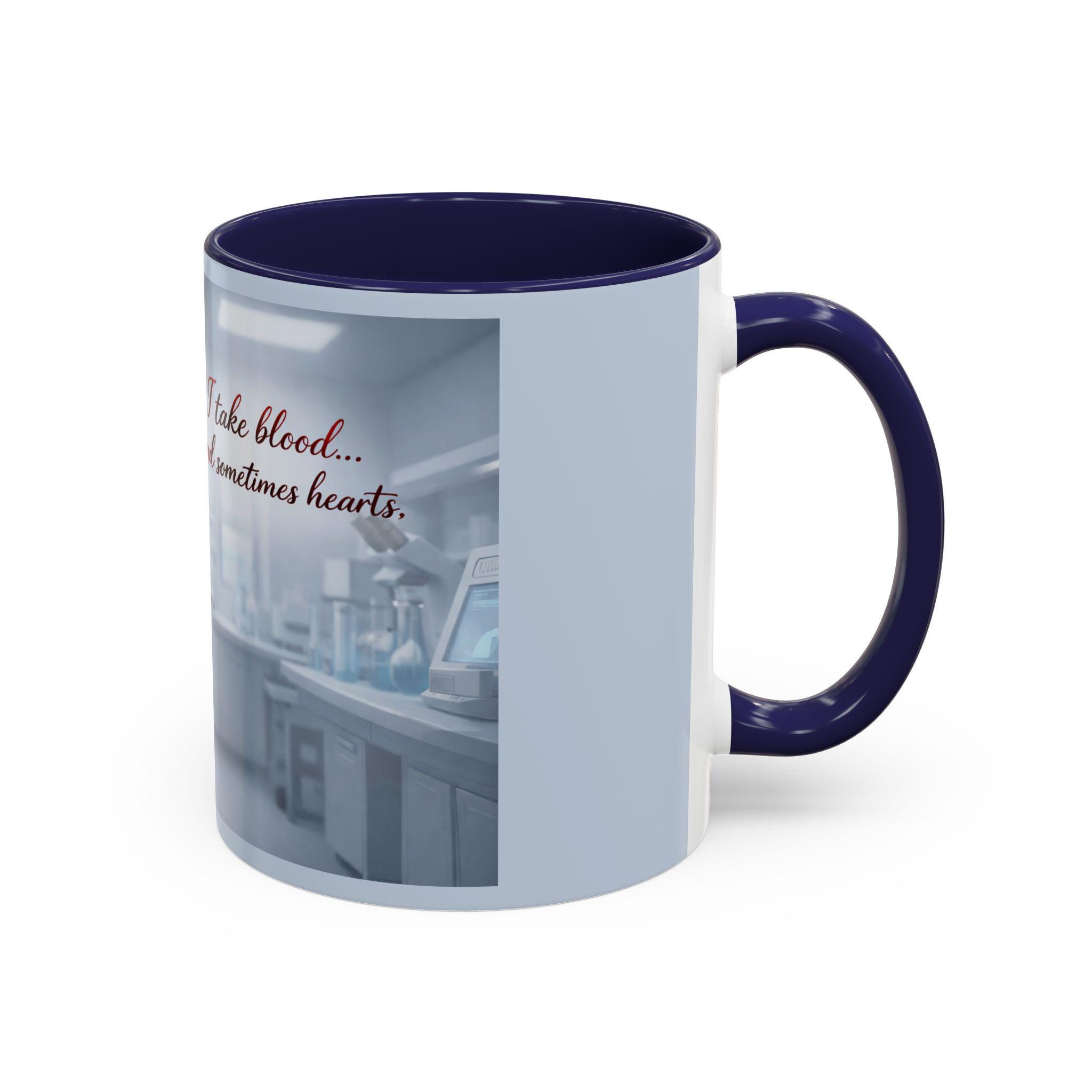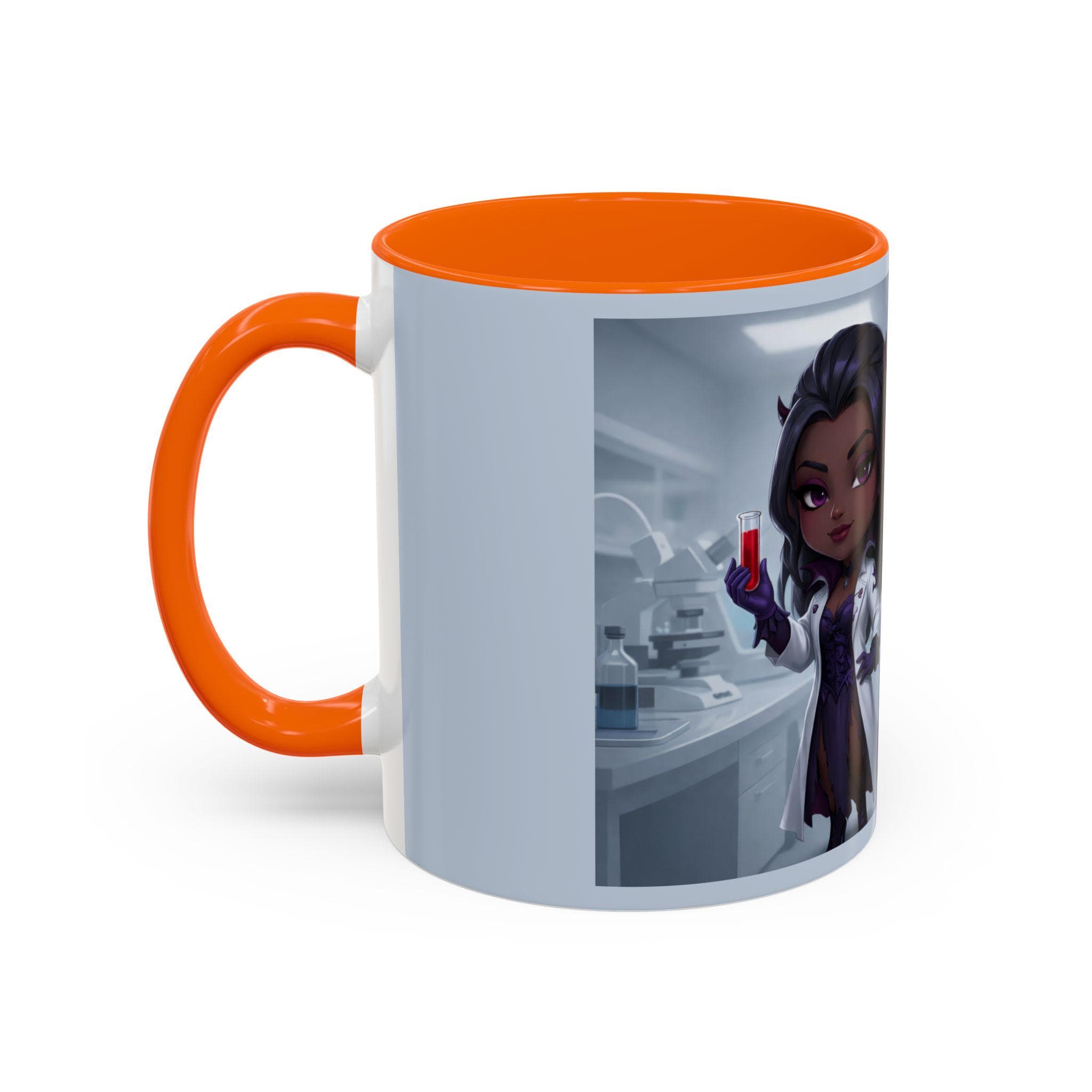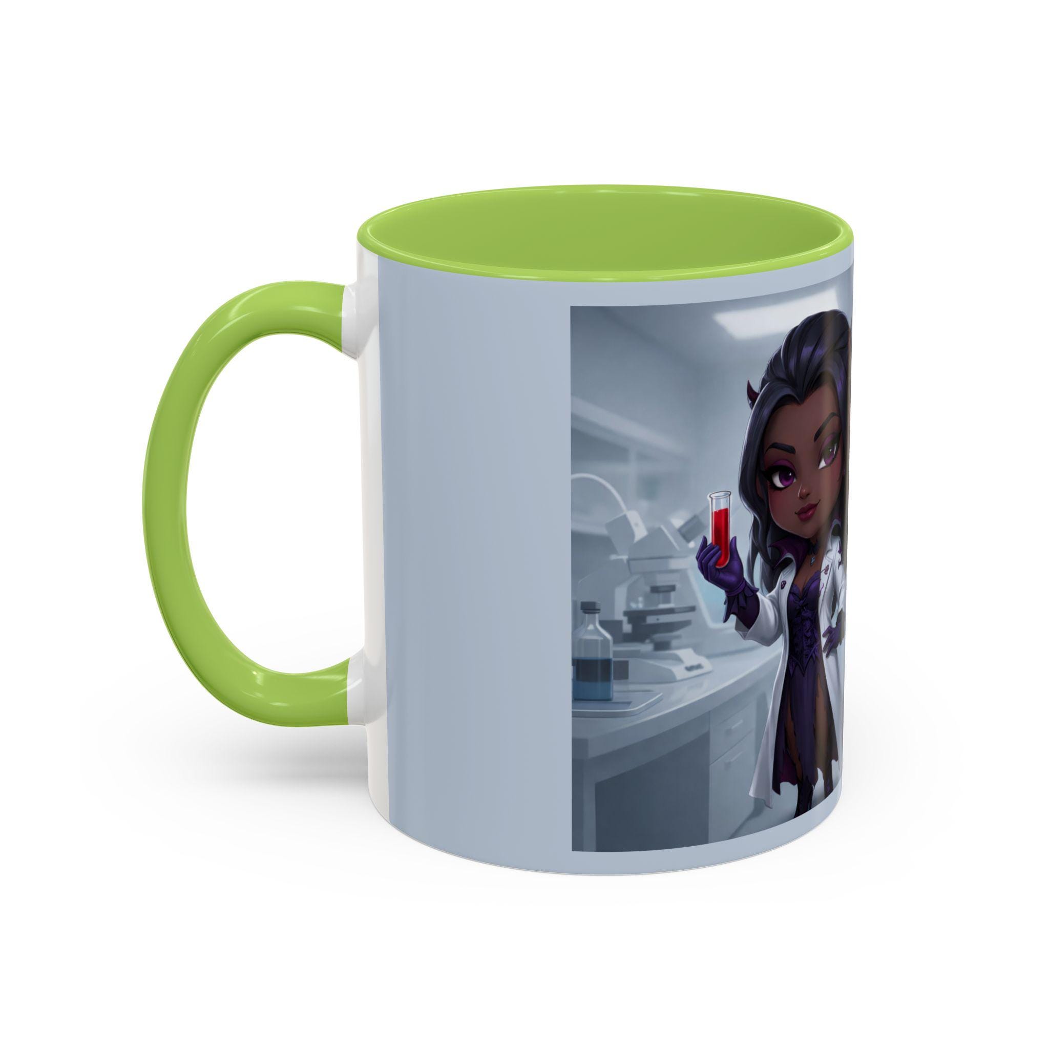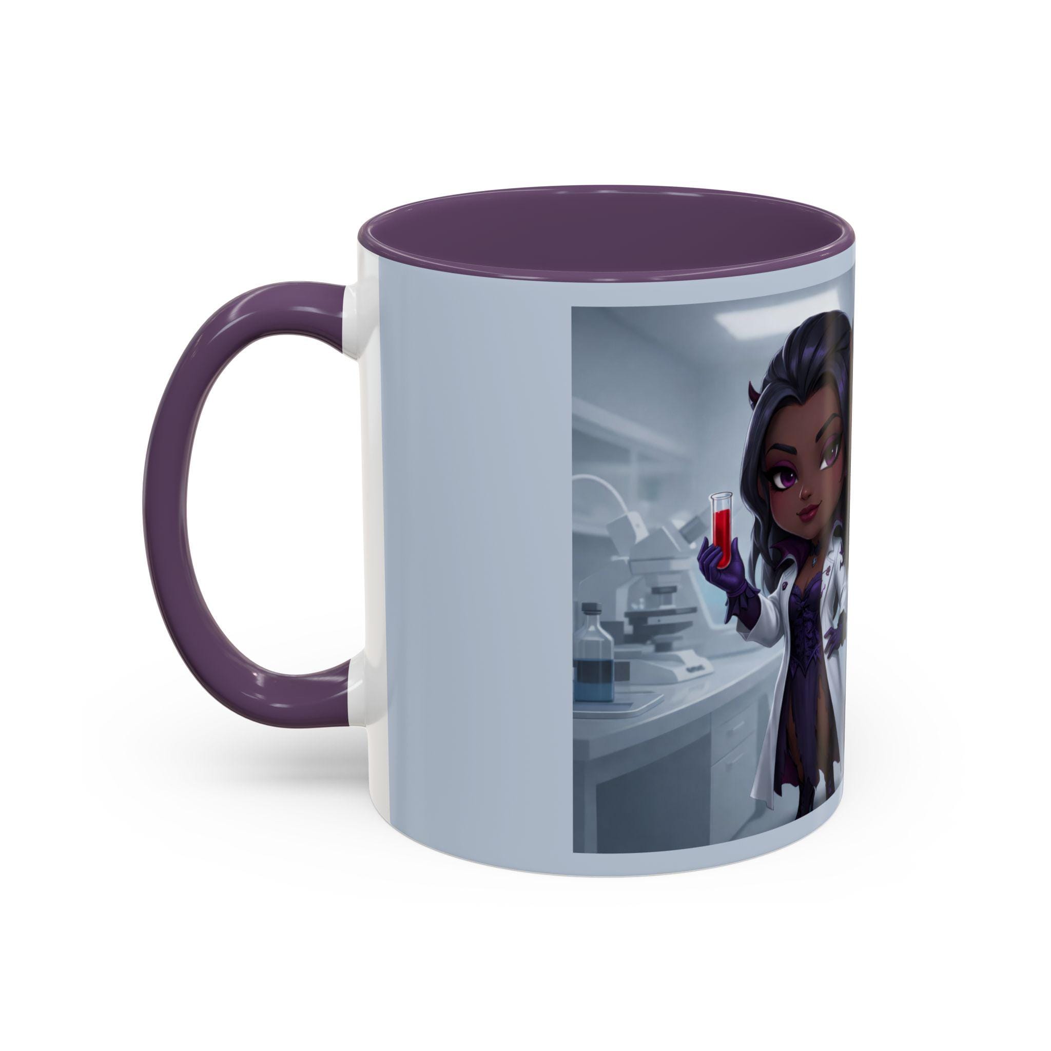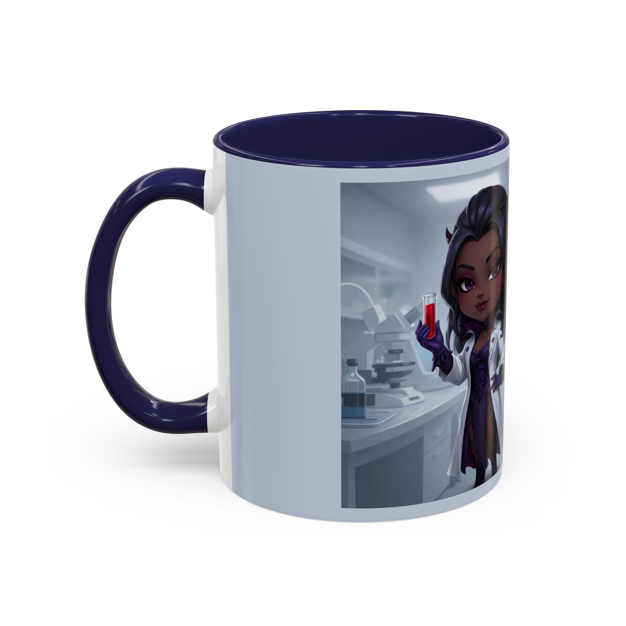 This mug features an elegant chibi-style vampire lab technician, holding a blood sample with a confident smile — paired with the flirtatiously wicked quote: