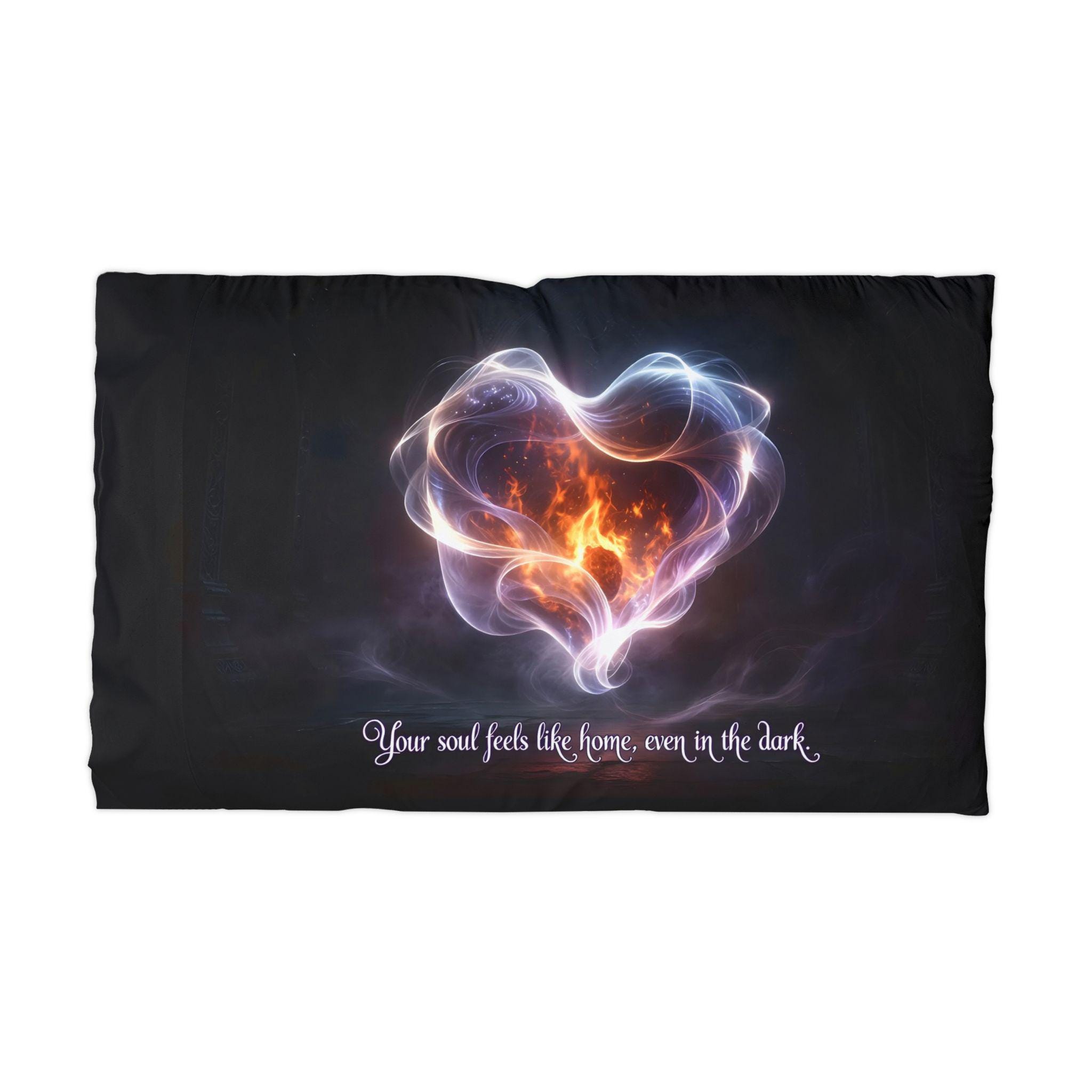 Bring deep romance and soft dark-aesthetic vibes into your home with this “Your soul feels like home” Flaming Heart Pillowcase.