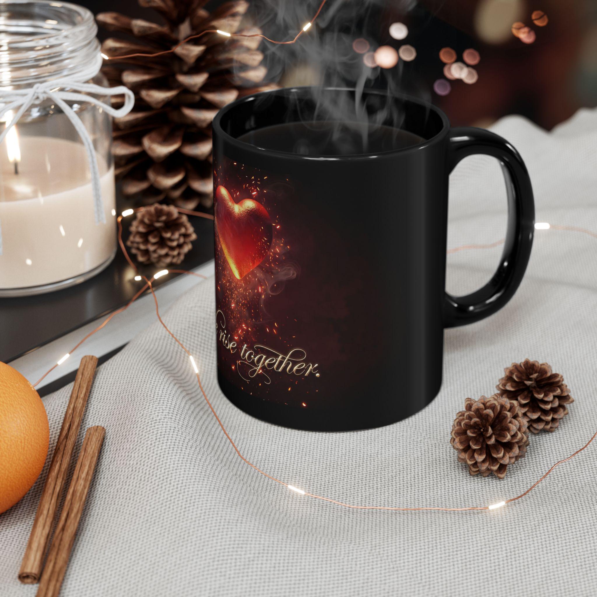 Celebrate love, unity, and strength with this stunning “We rise together” flaming heart mug.