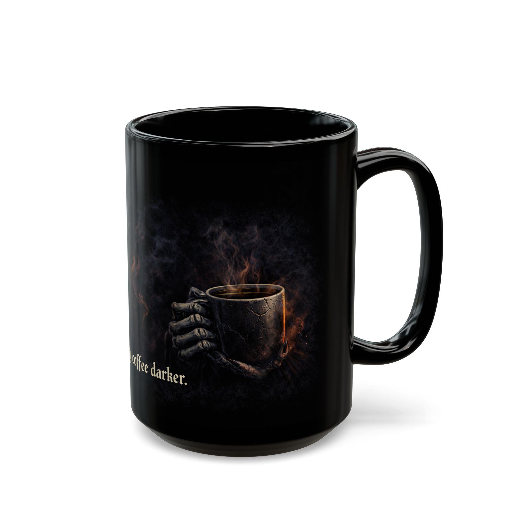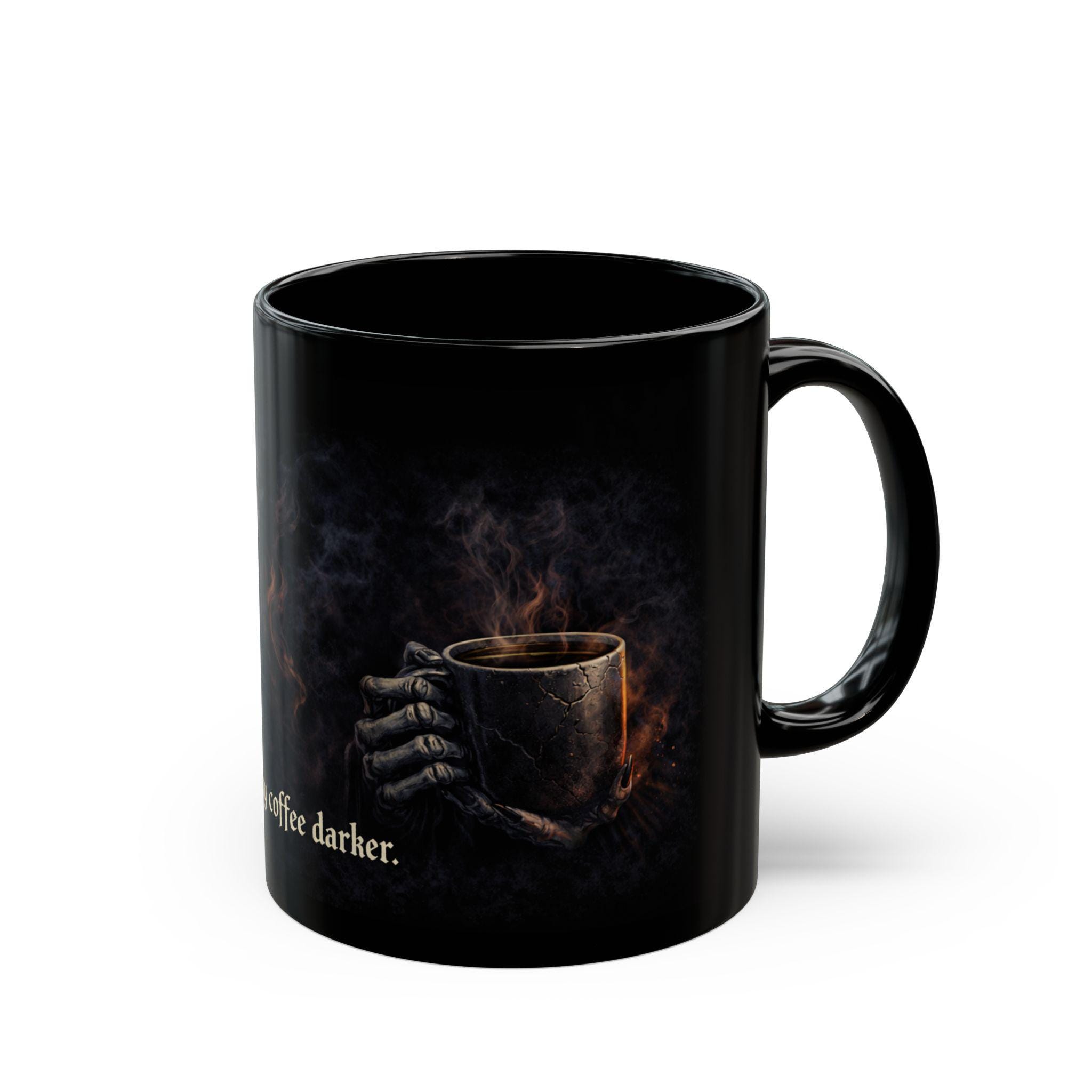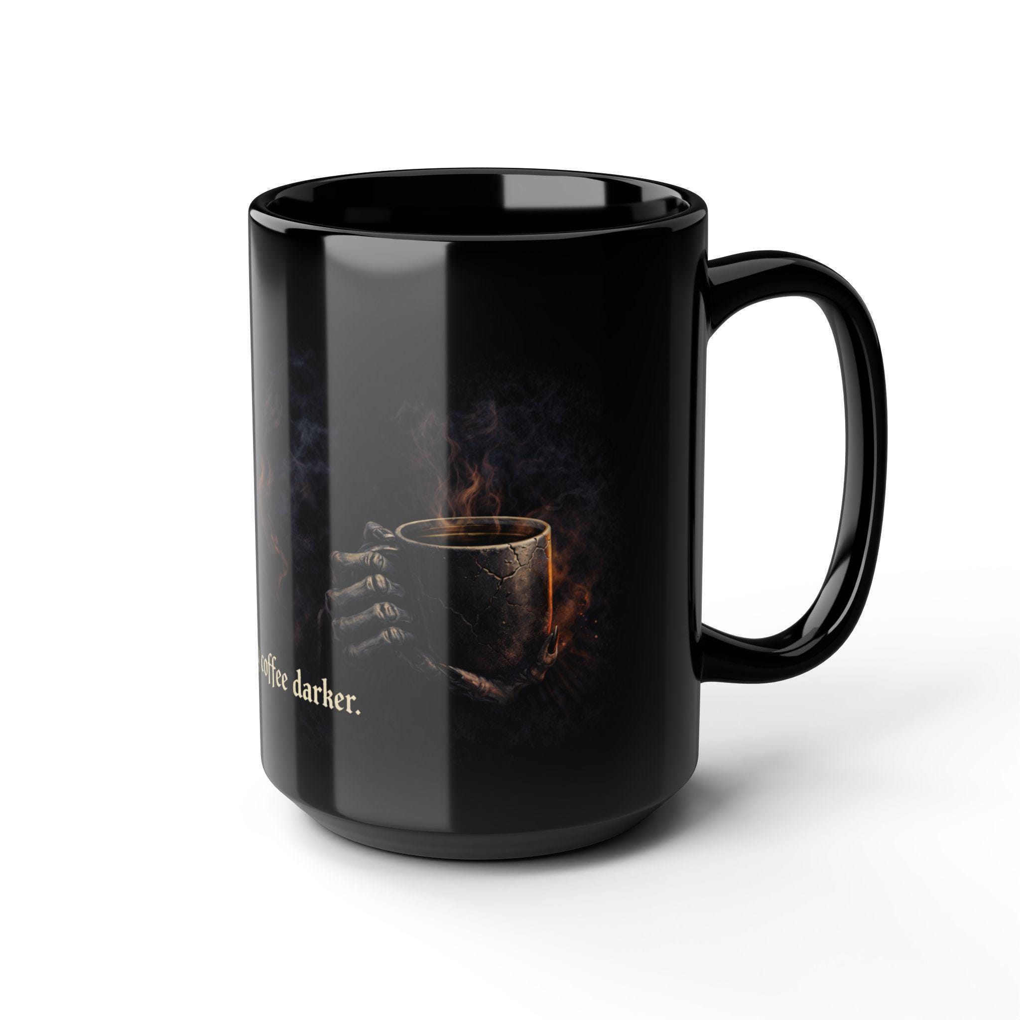Paired with atmospheric artwork of skeleton hands emerging from swirling shadows, this mug is made for goths, night owls, metalheads, and every coffee addict with a darker sense of humor.