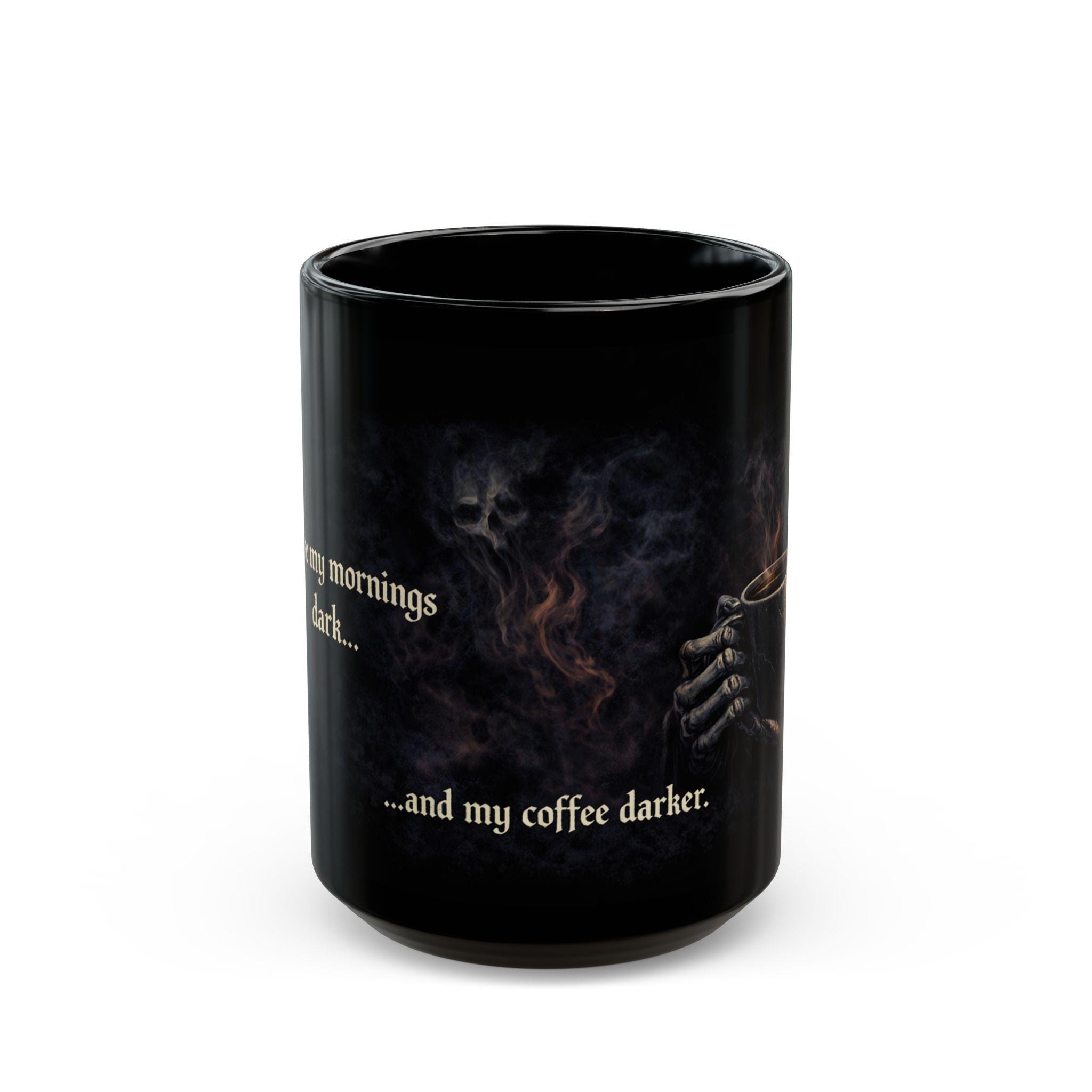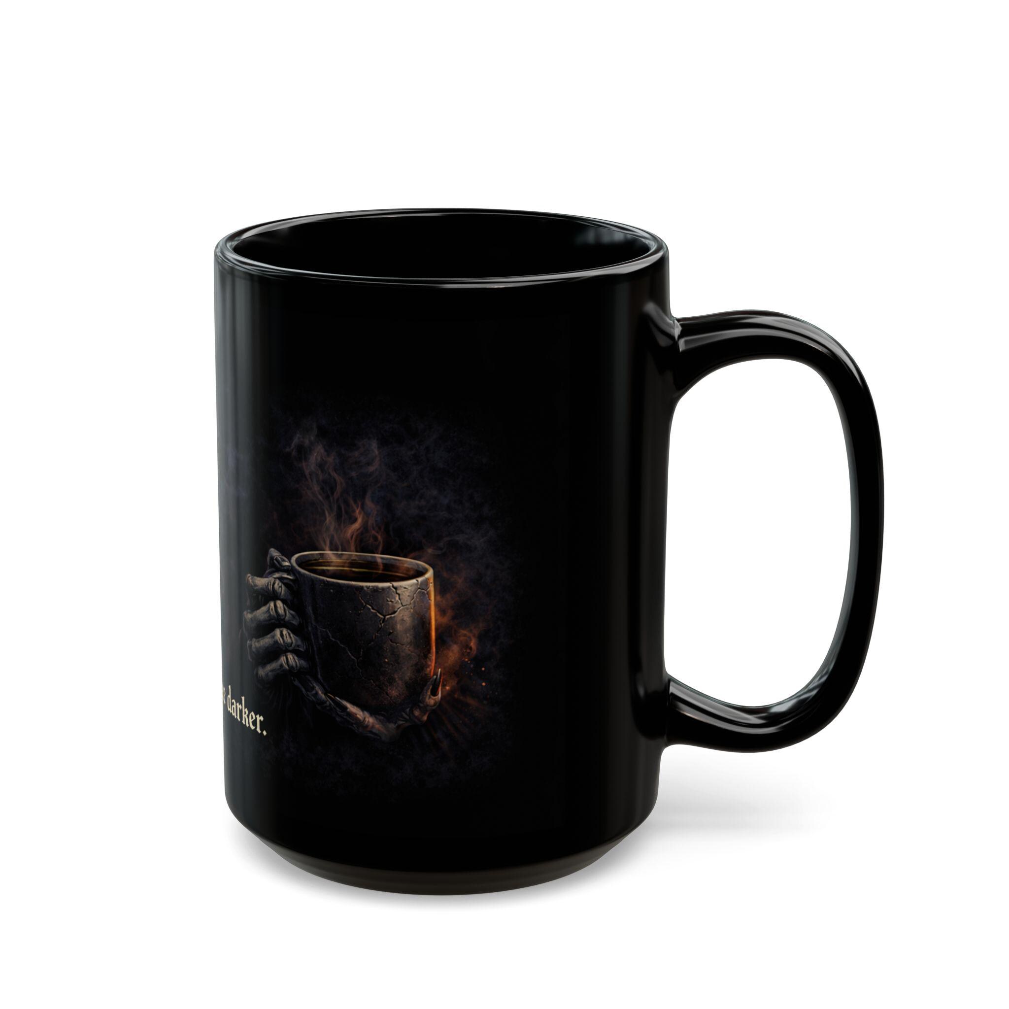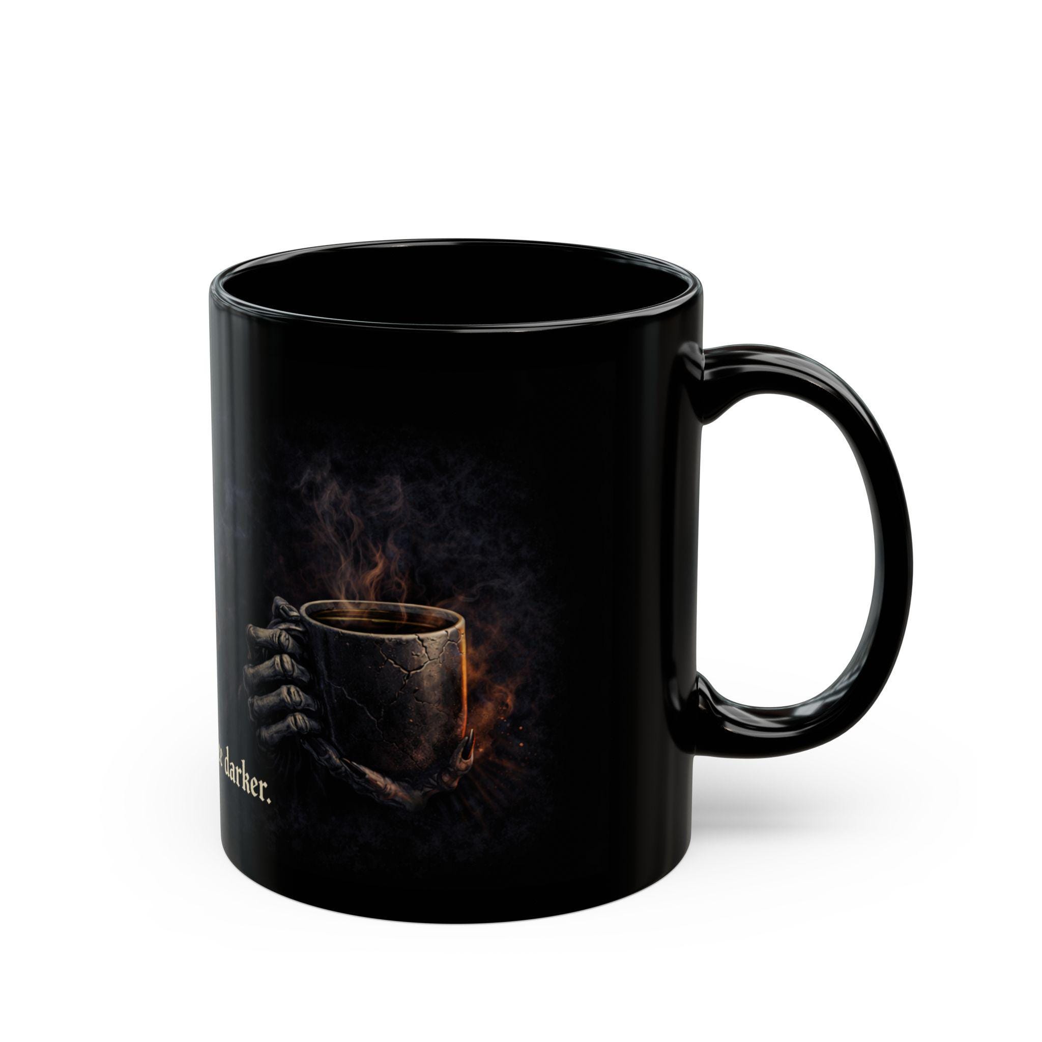 Paired with atmospheric artwork of skeleton hands emerging from swirling shadows, this mug is made for goths, night owls, metalheads, and every coffee addict with a darker sense of humor.