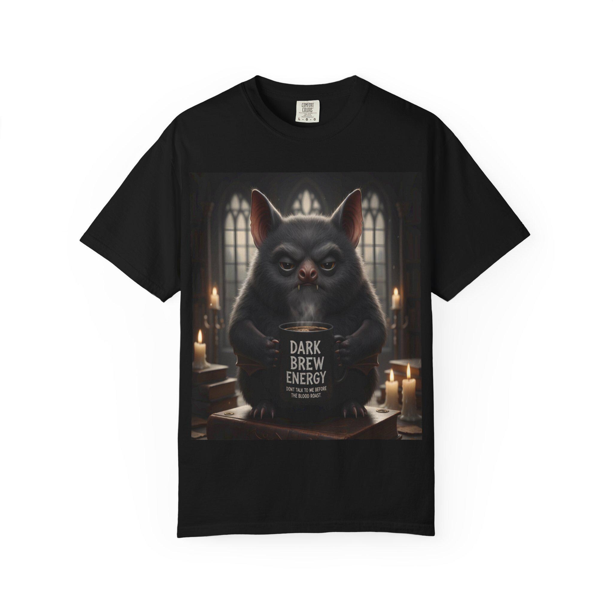 Start your day with Dark Brew Energy — and a grumpy little vampire bat who understands exactly how you feel before your first cup of coffee.