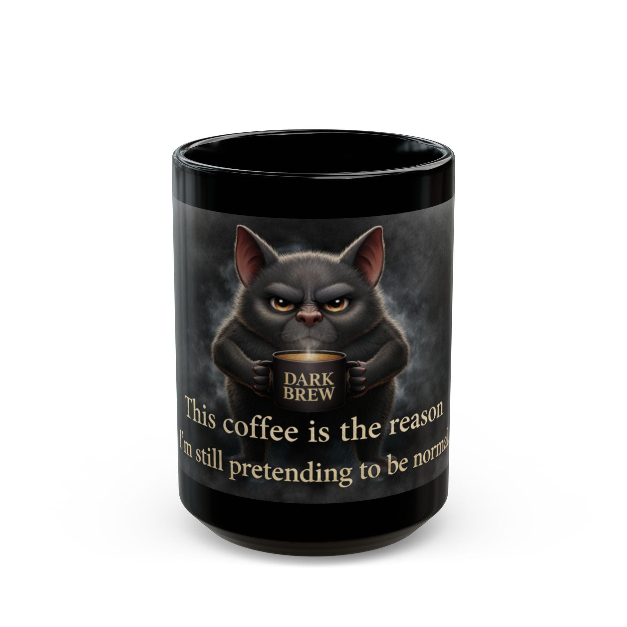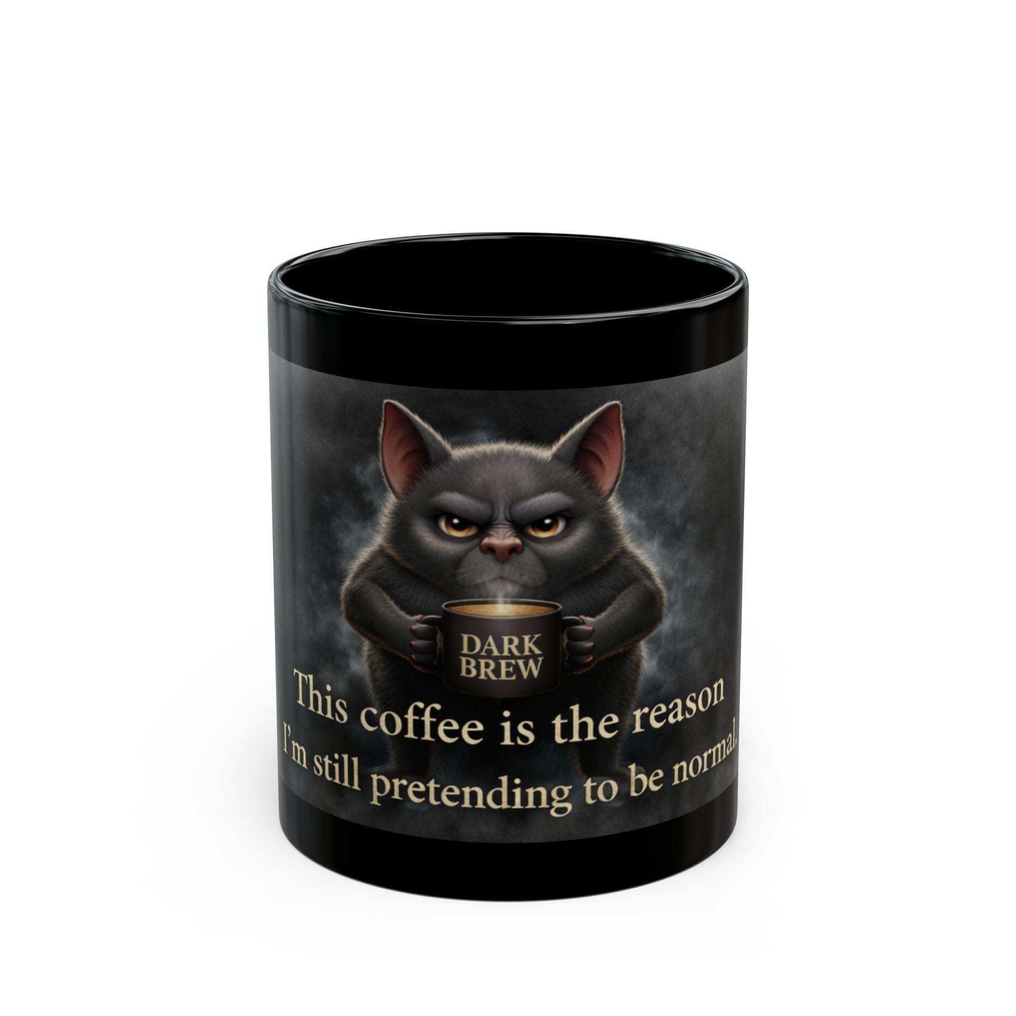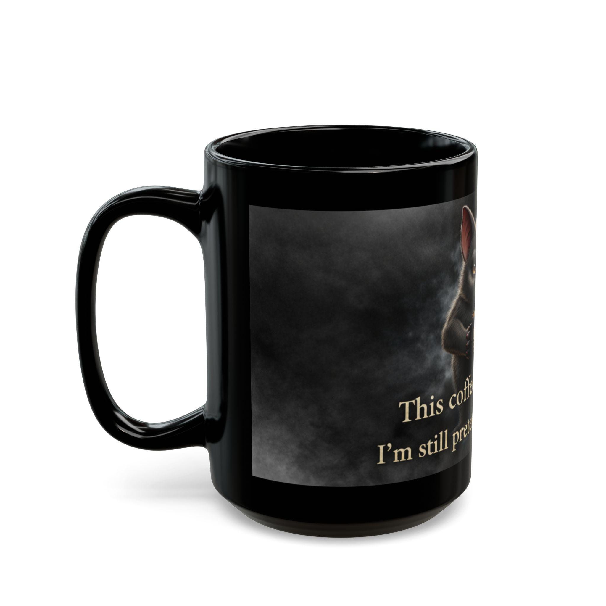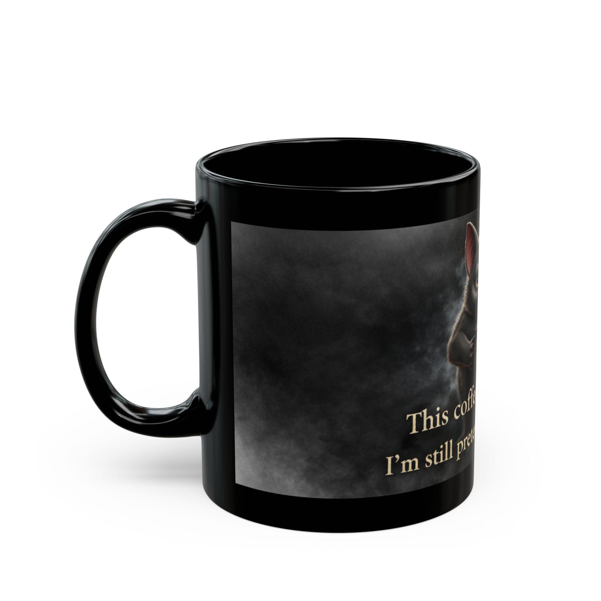 The deep black glaze makes the artwork pop while keeping the look moody and understated. Fits into routines where humor and a strong cup of coffee go hand in hand.