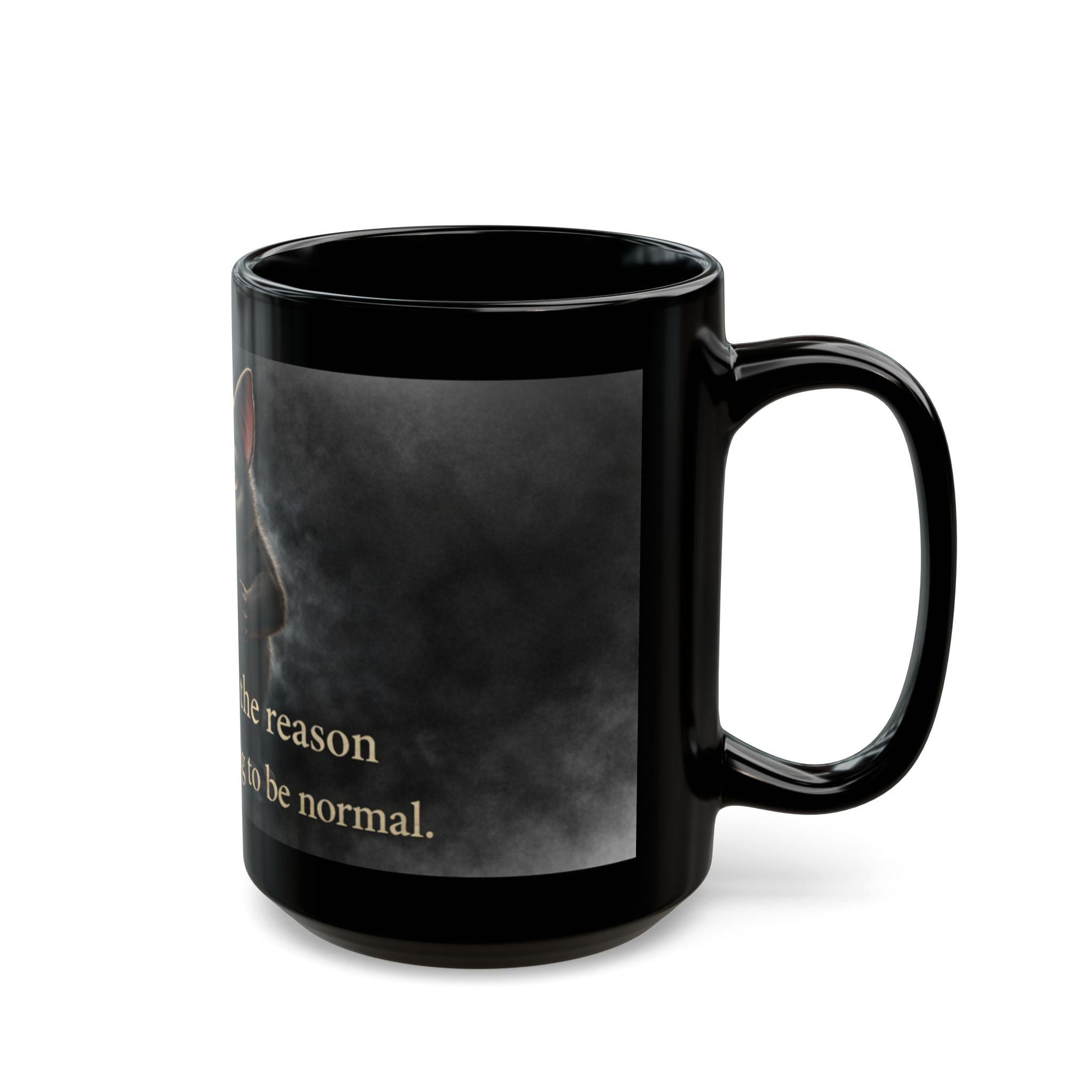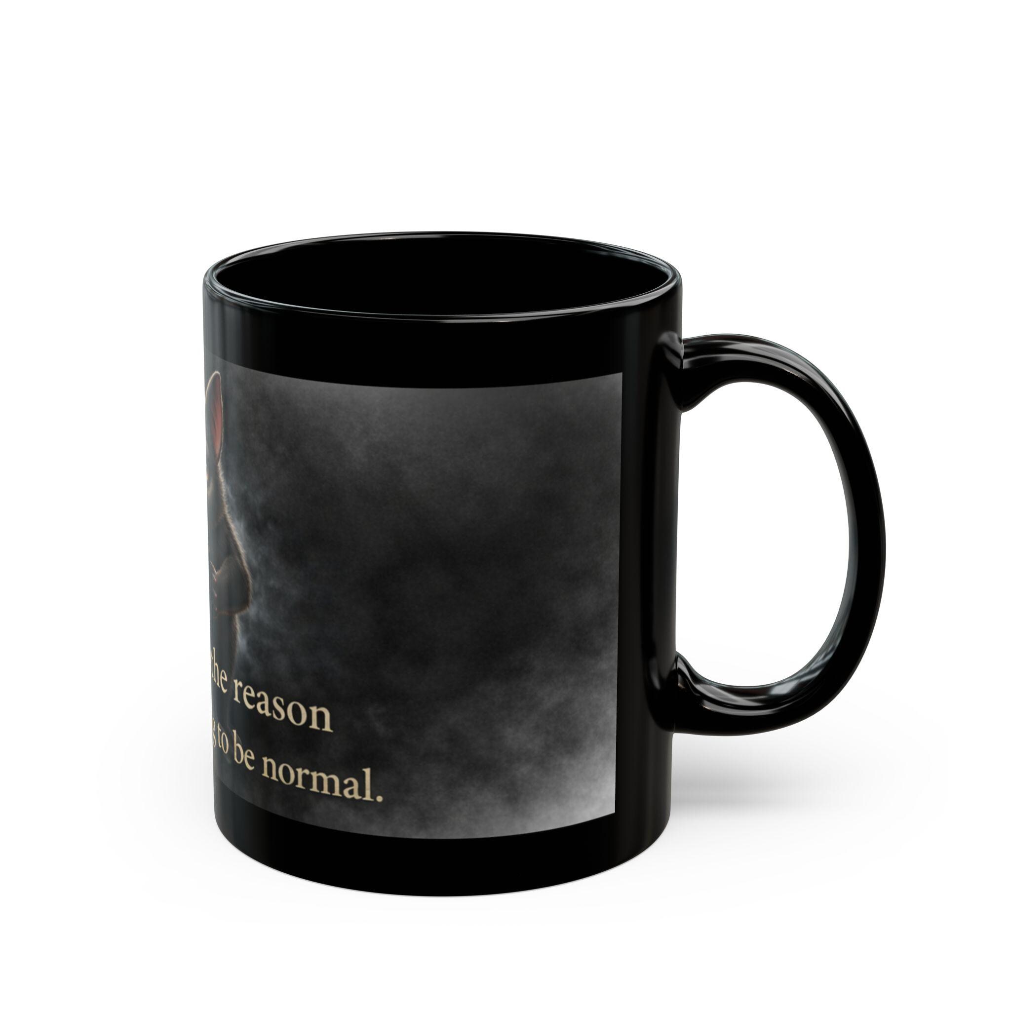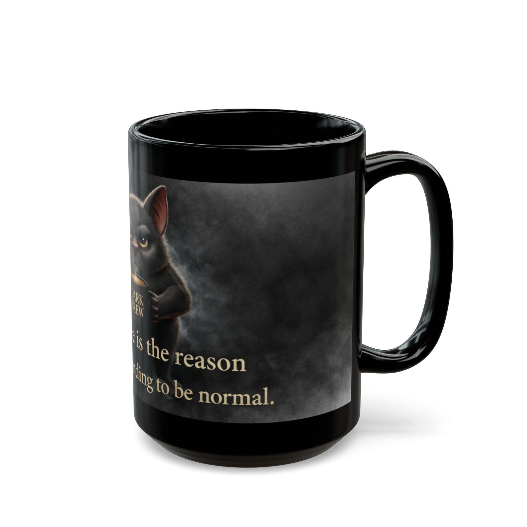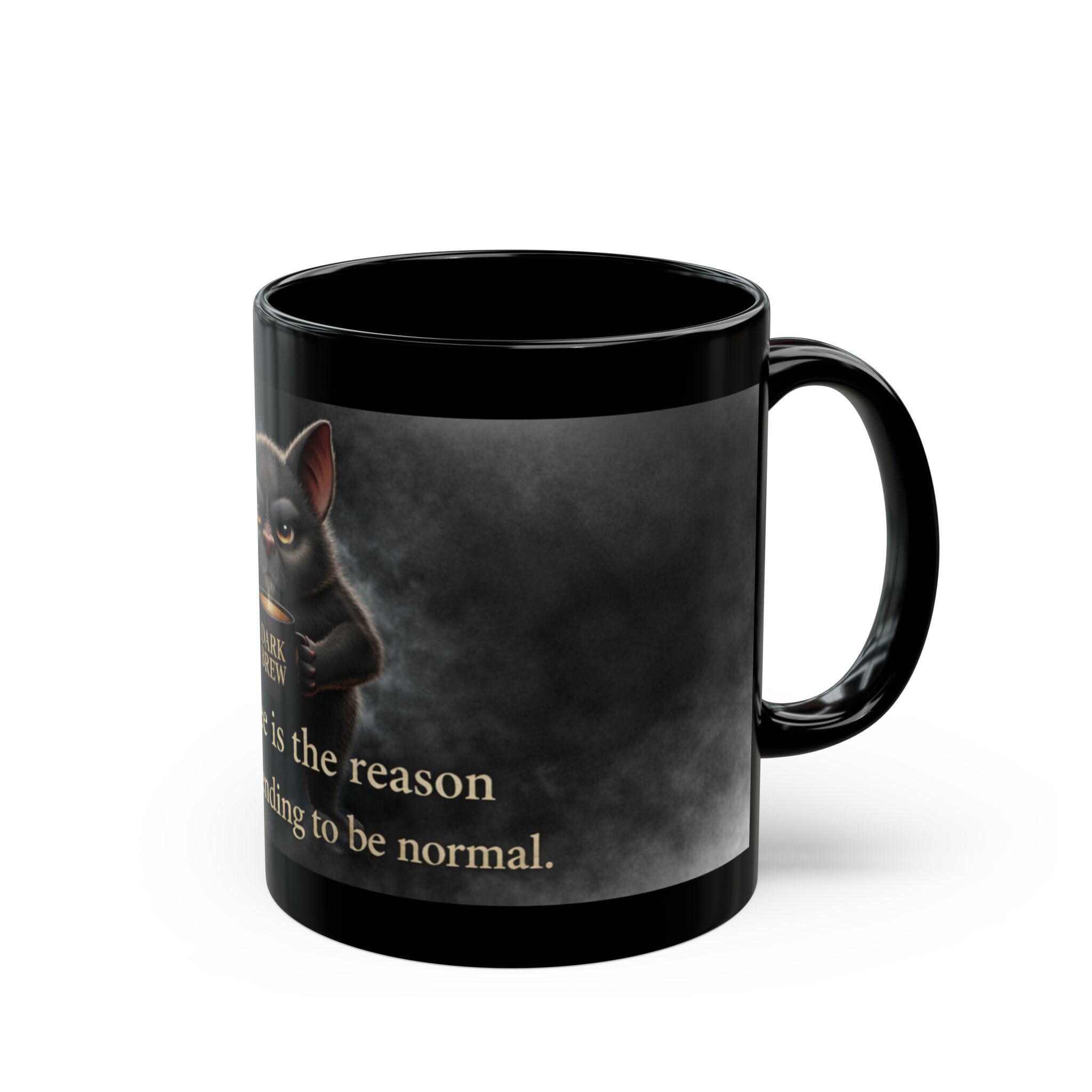 The deep black glaze makes the artwork pop while keeping the look moody and understated. Fits into routines where humor and a strong cup of coffee go hand in hand.