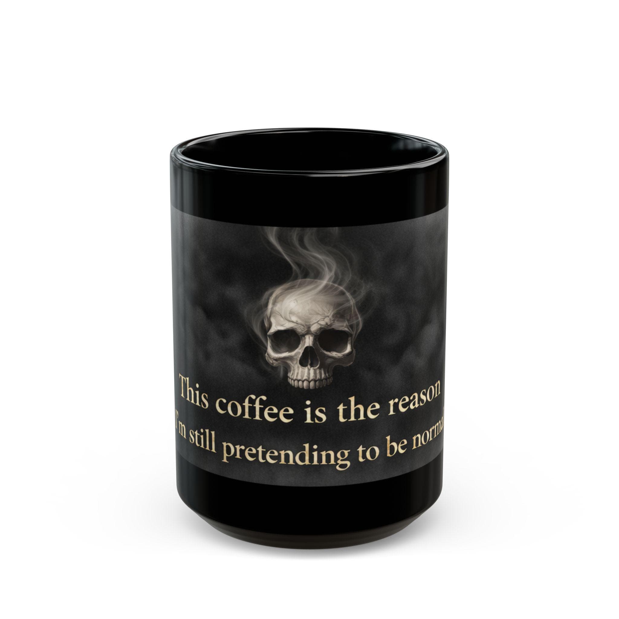 Featuring a smoky skull rising from a misty dark background, this mug blends gothic aesthetics with sarcastic humor—perfect for your morning routine, your office desk, or anyone who needs a stronger brew just to function.