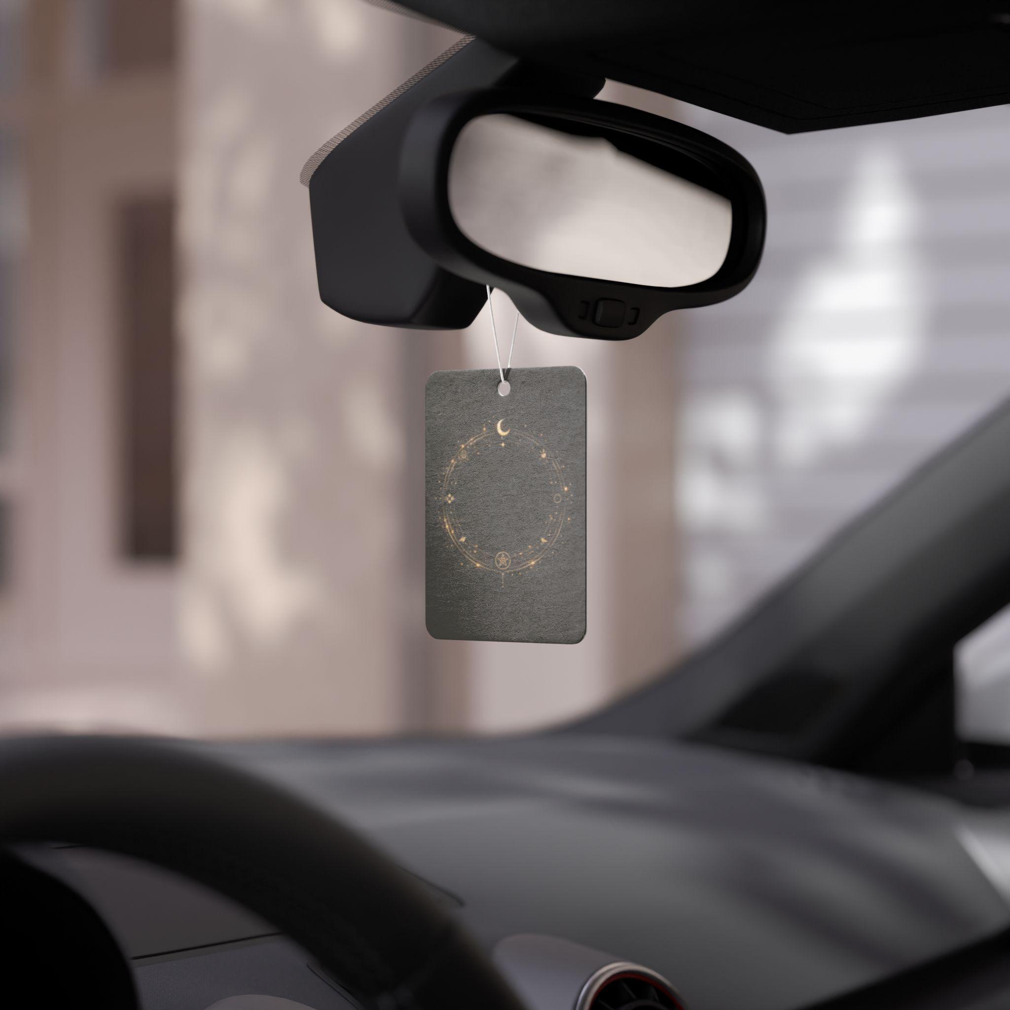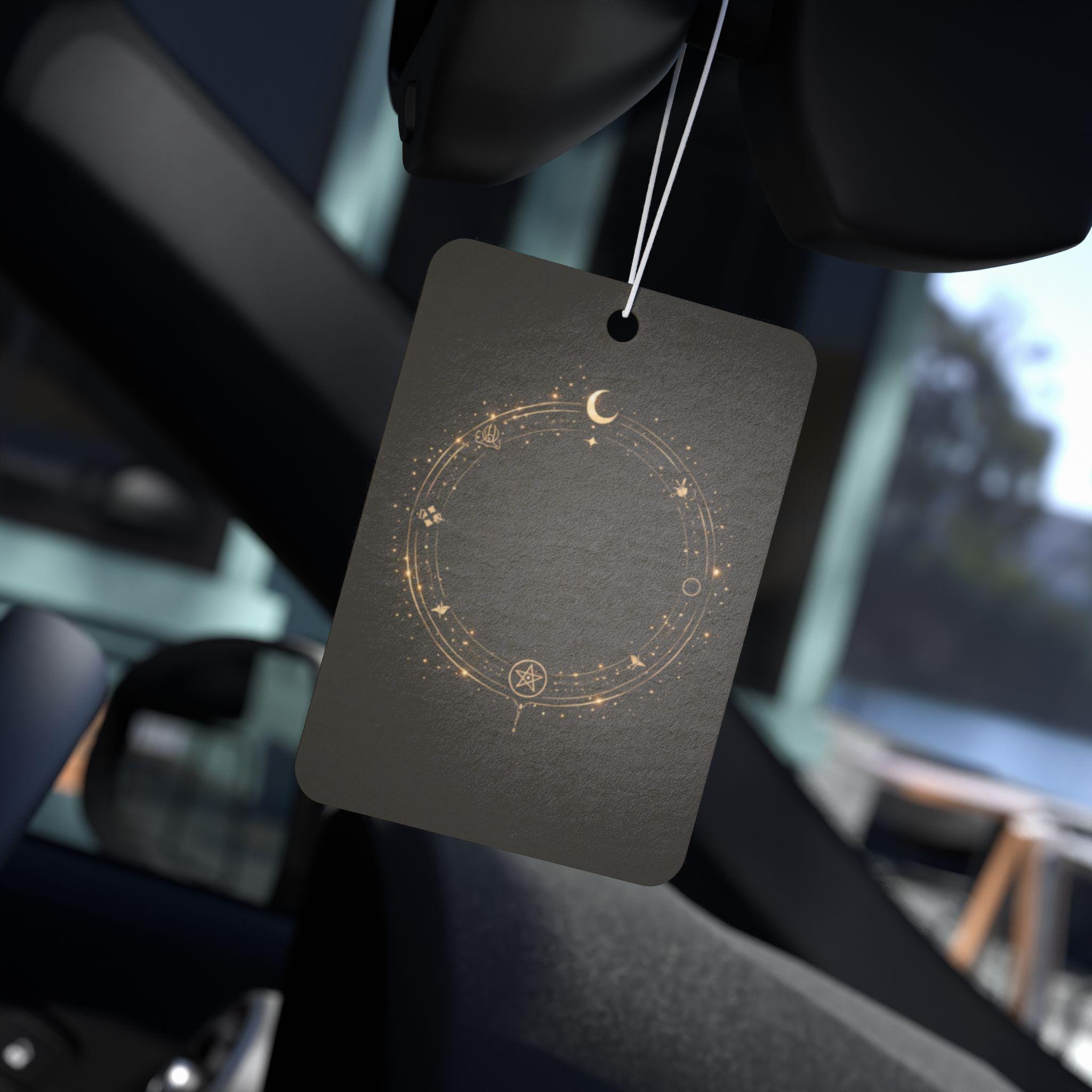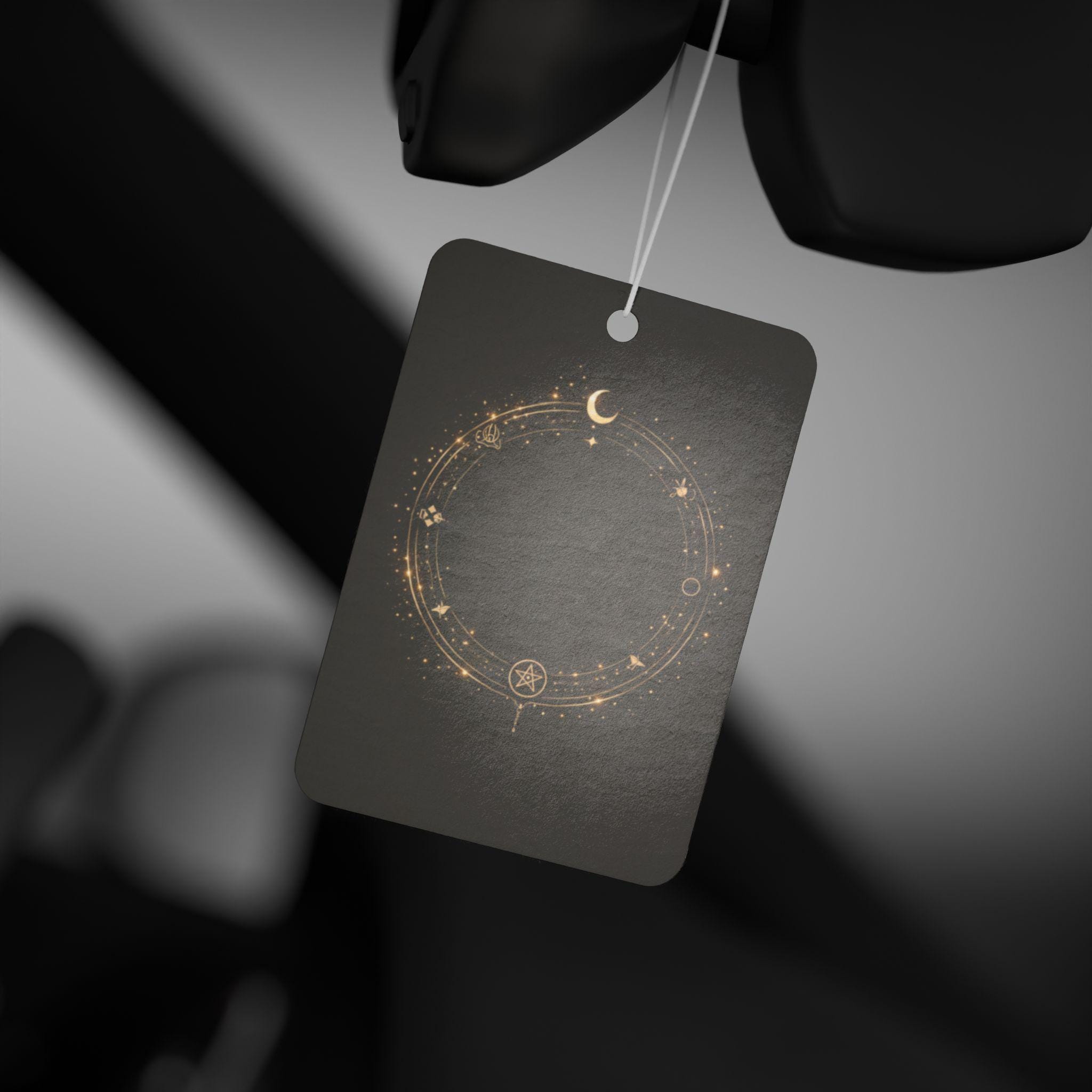 This gothic-inspired car air freshener features an elegant gold witch circle with moon and star details — perfect for anyone who loves subtle mysticism, celestial symbols, and dark aesthetic decor.