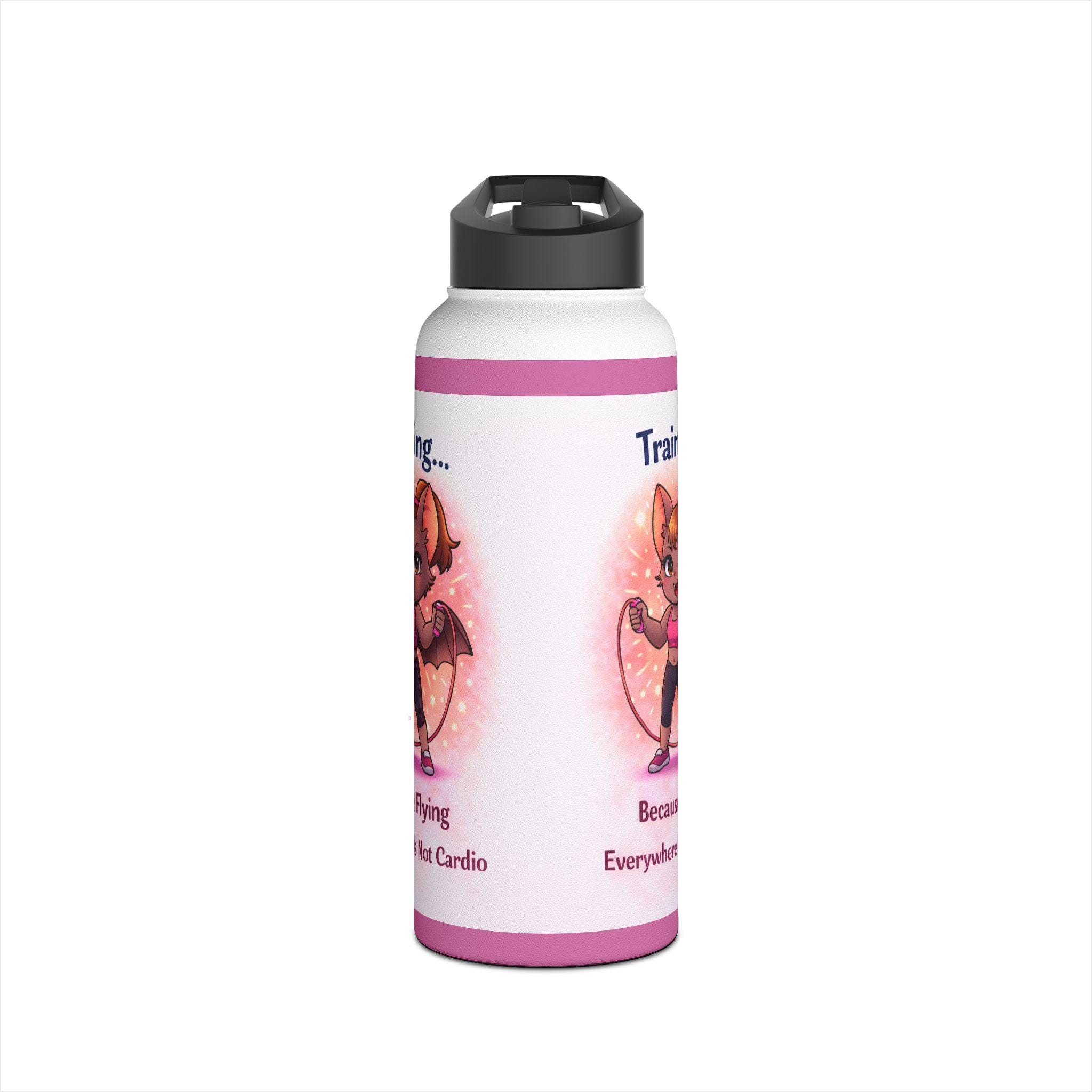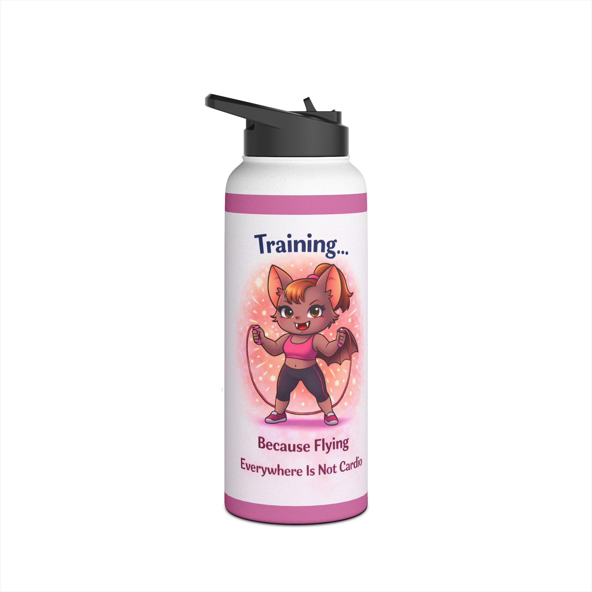 Featuring the fun and empowering quote “Training… Because Flying Everywhere Is Not Cardio,” this bottle is perfect for gym lovers, runners, HIIT fans, and anyone who appreciates a little kawaii power during their workout.
