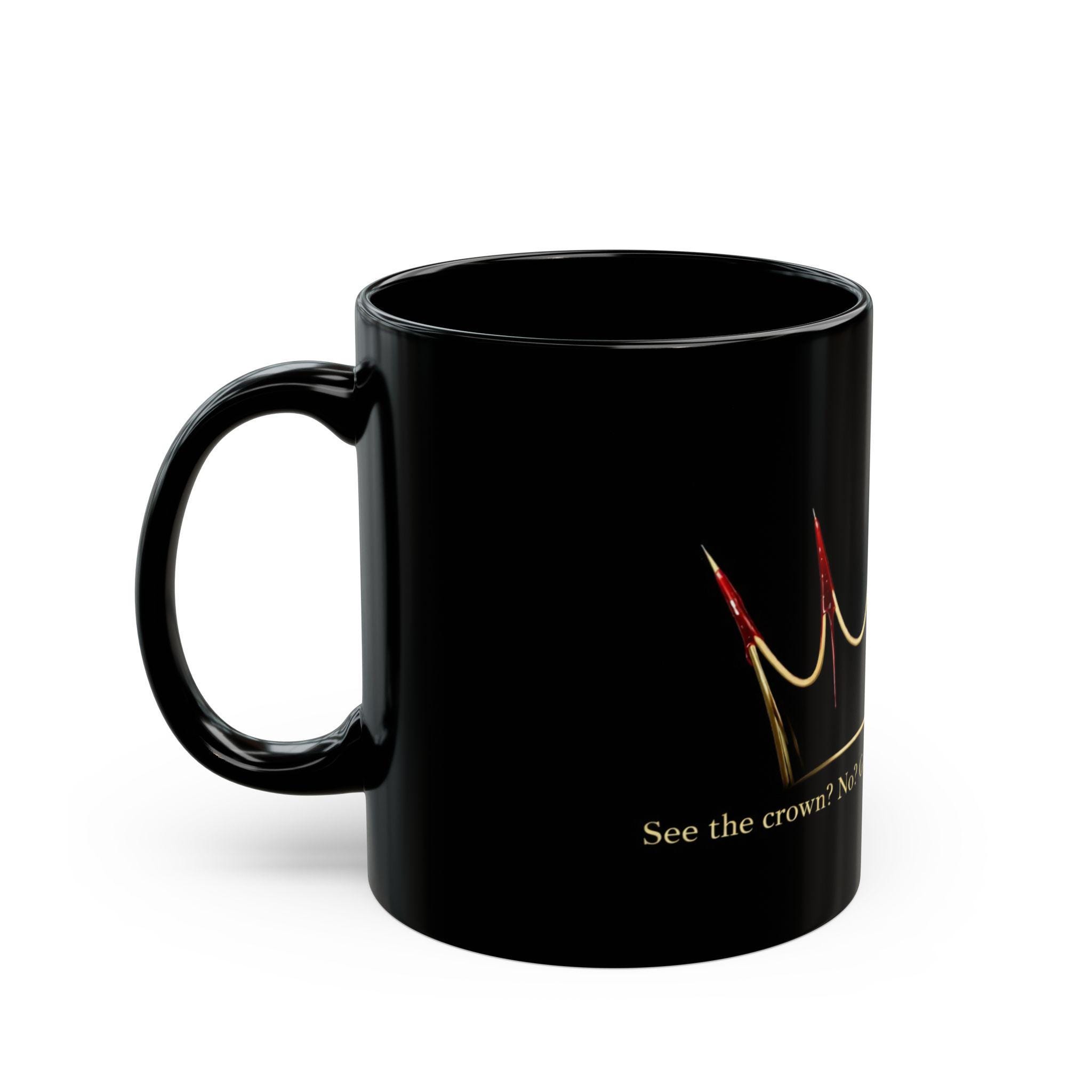 This dark and elegant 11oz black ceramic mug features a gold crown with blood-tipped spikes and the bold statement: