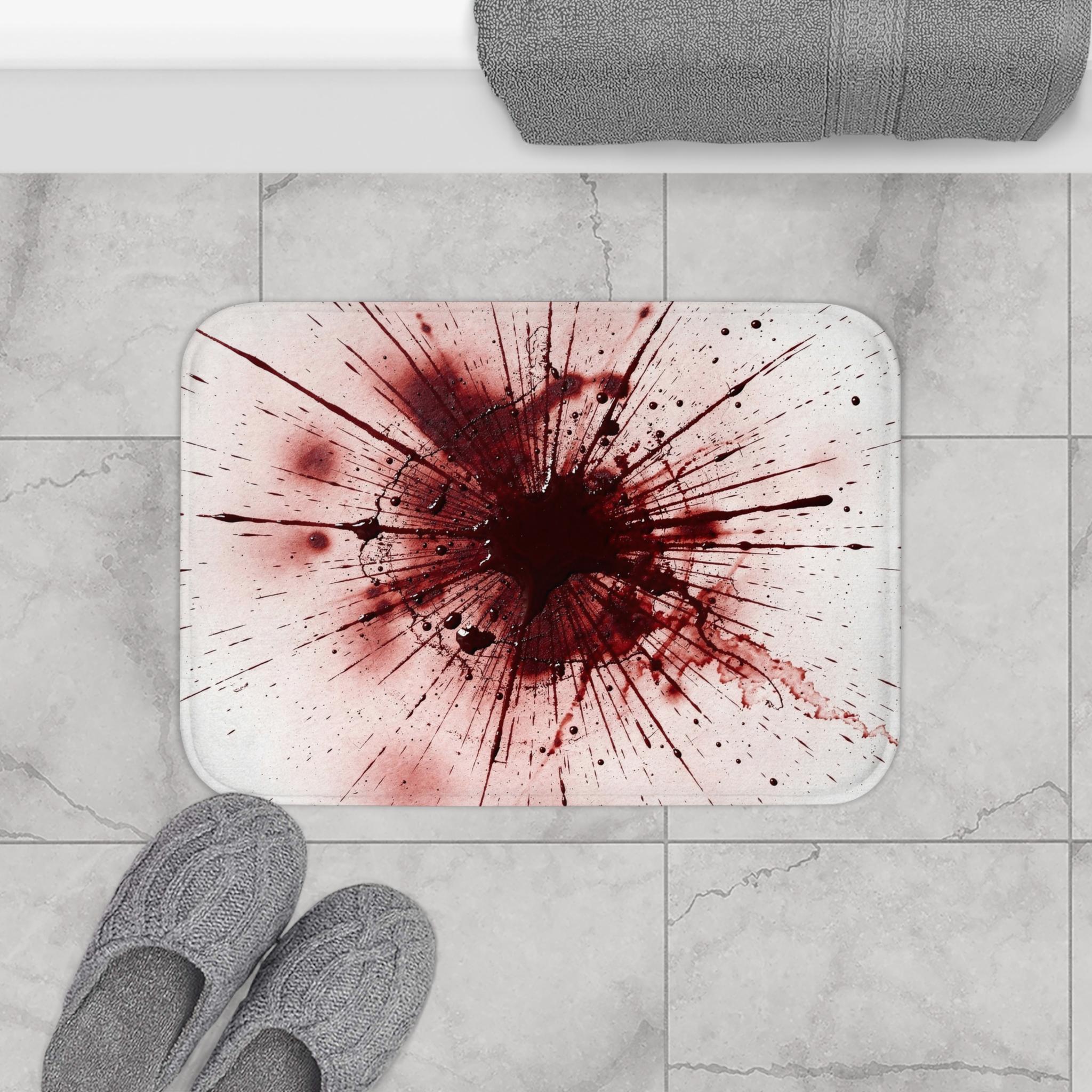 Available in 24×17 and 34×21, this ultra-soft mat features a bold crimson splatter design that transforms your bathroom into a dramatic, artistic scene.