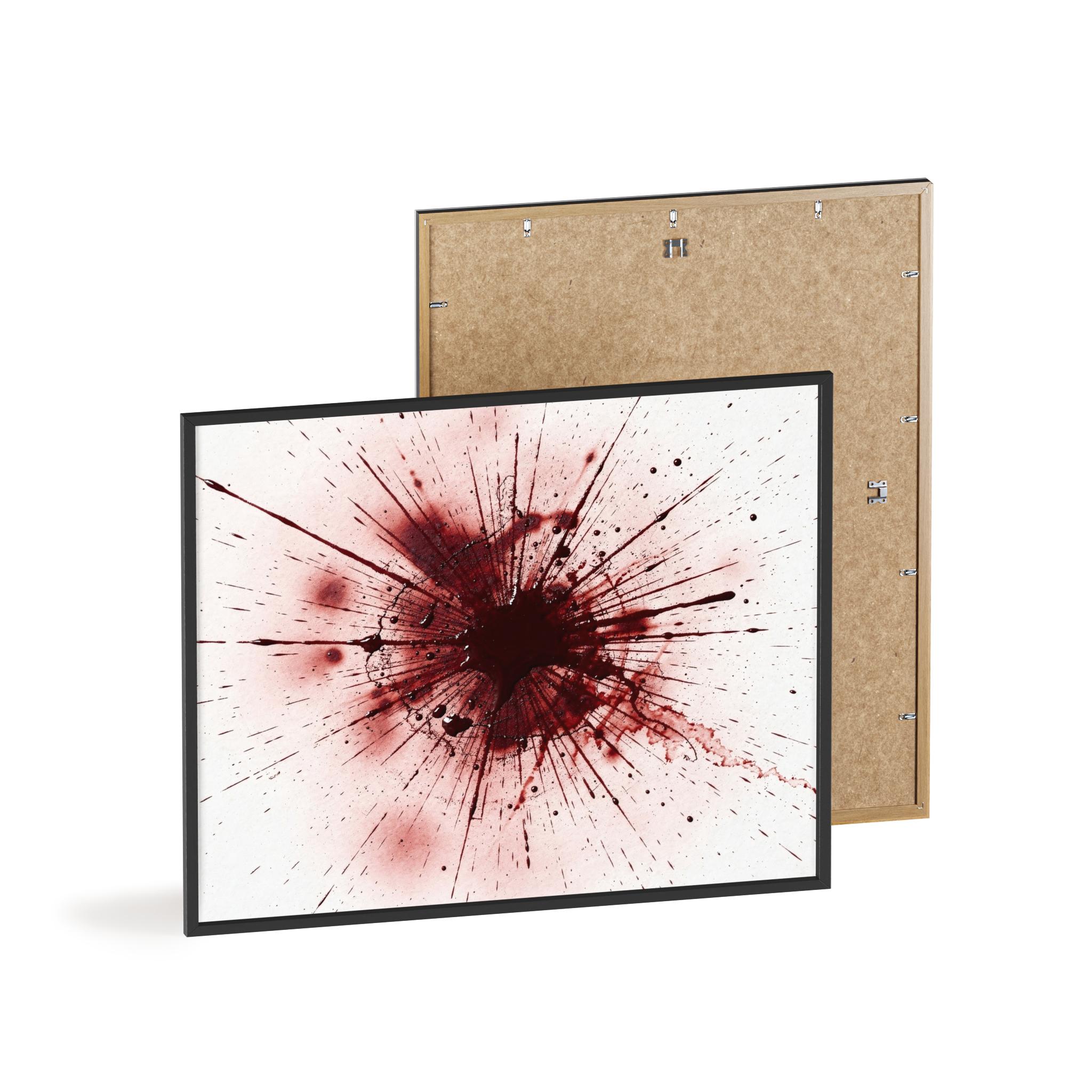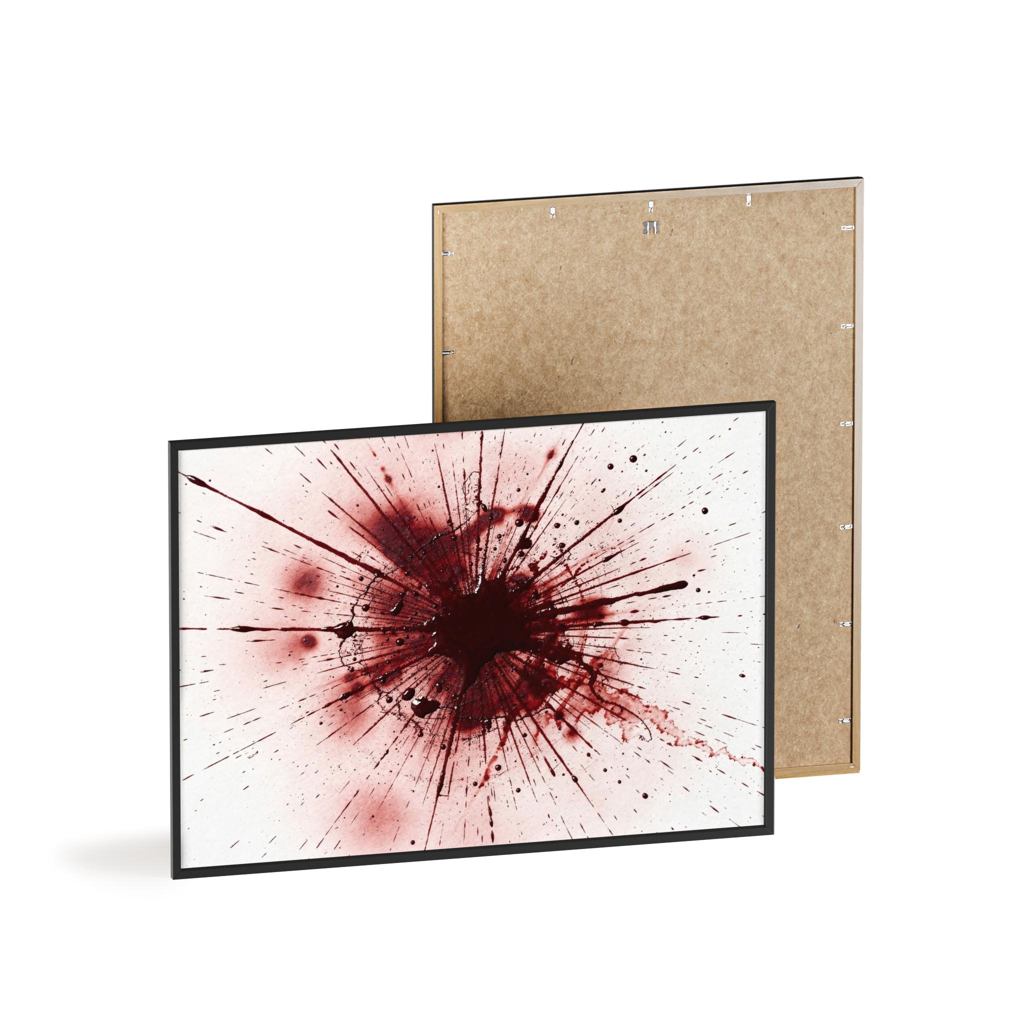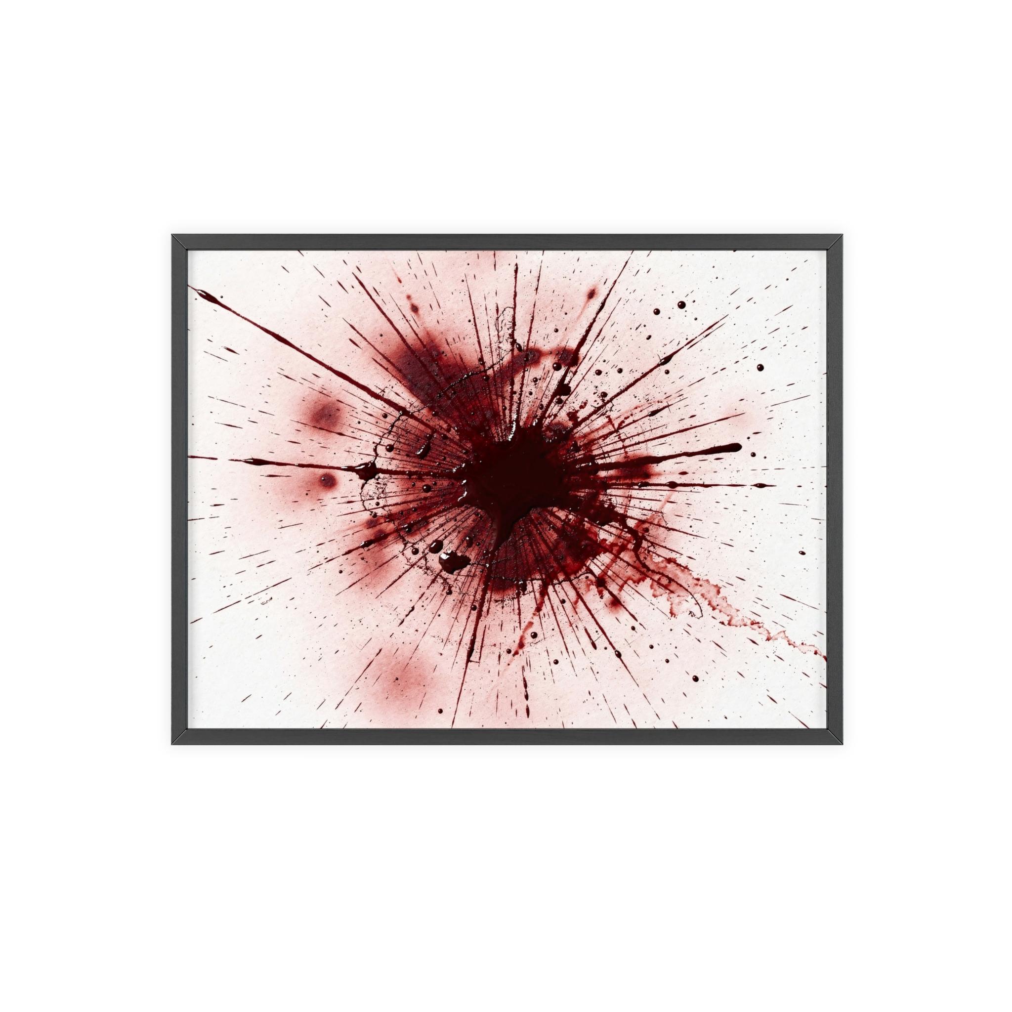 Make a dramatic statement in your home with this framed abstract blood splatter design, printed in stunning high detail and presented in a sleek black wooden frame.