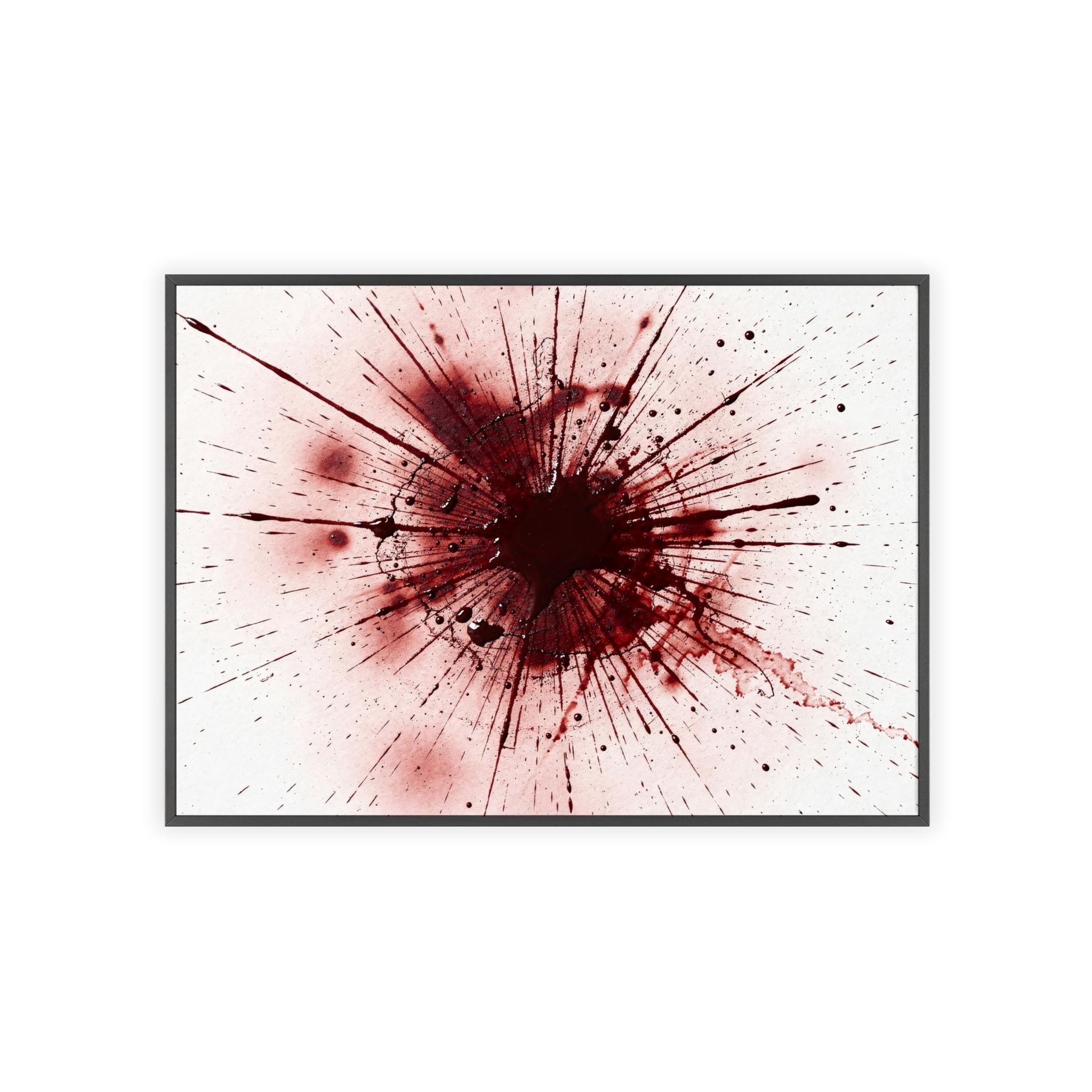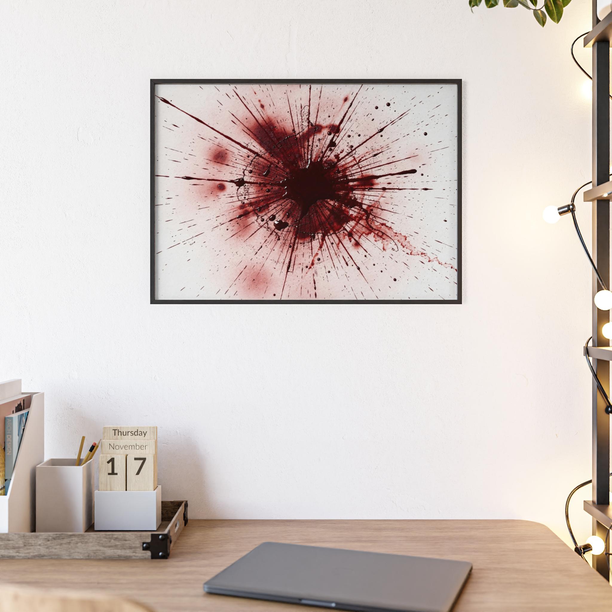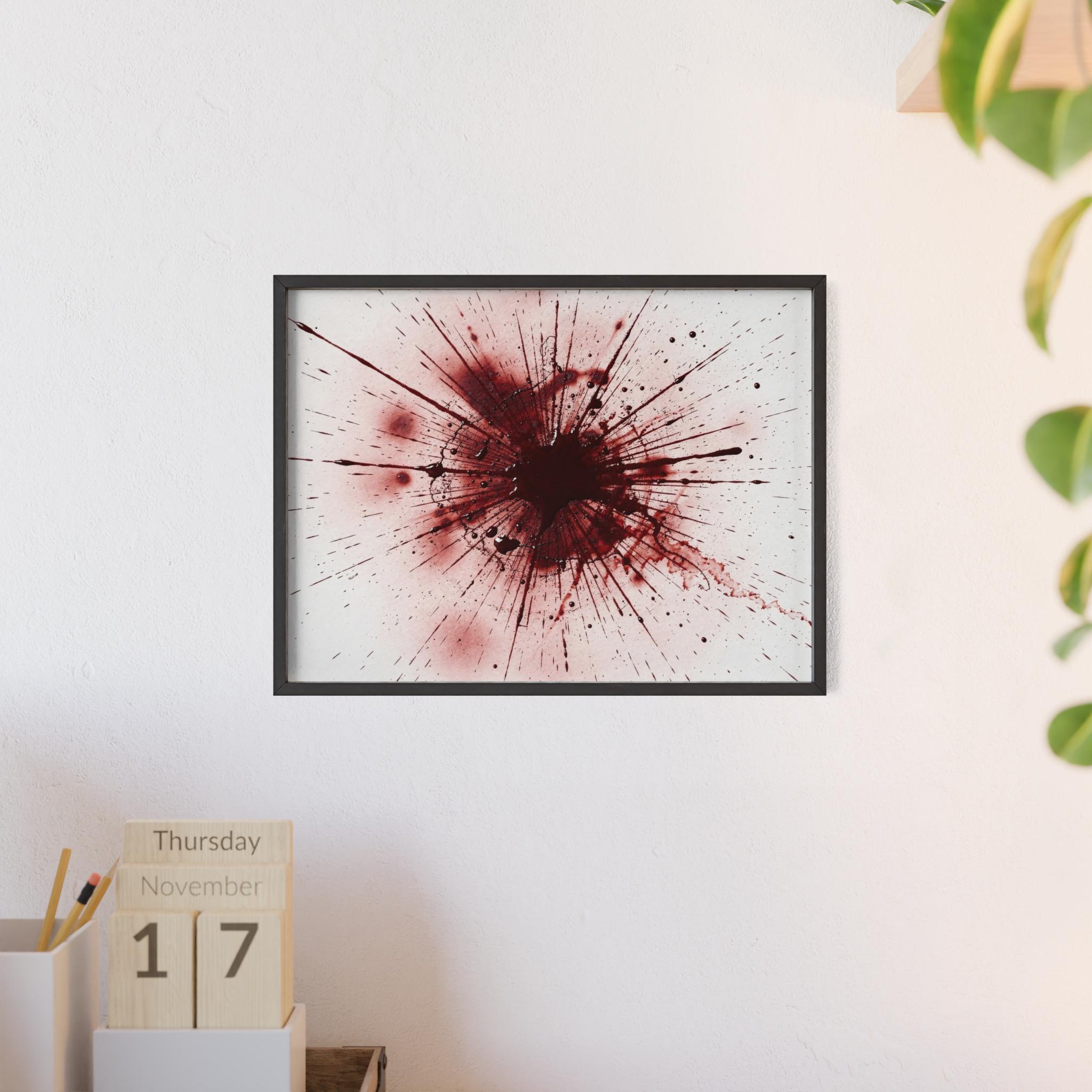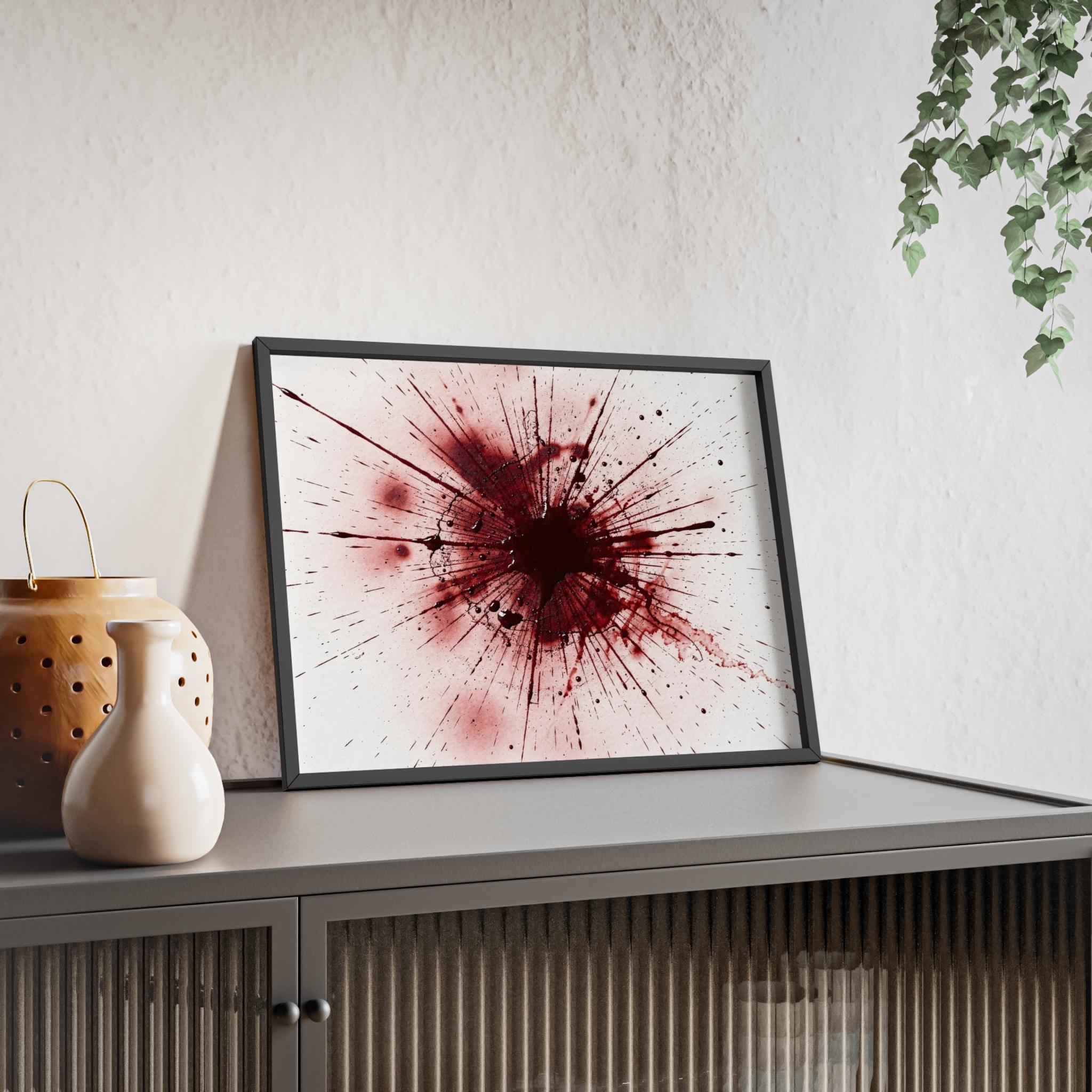 Framed Blood Splatter Wall Art – Gothic Abstract Print in Black Wood Frame