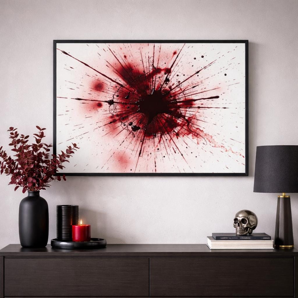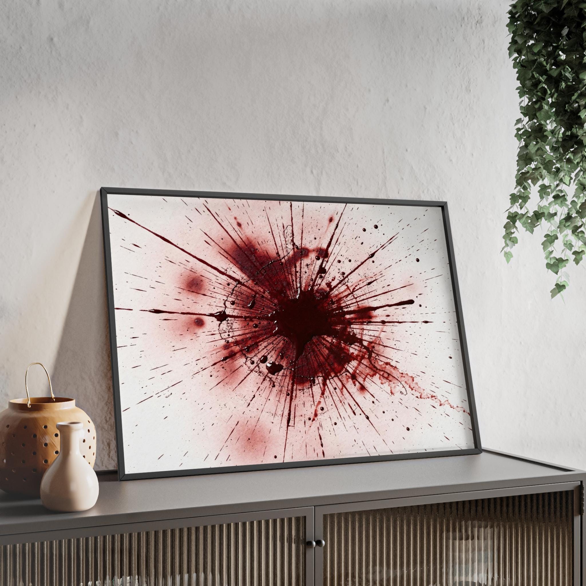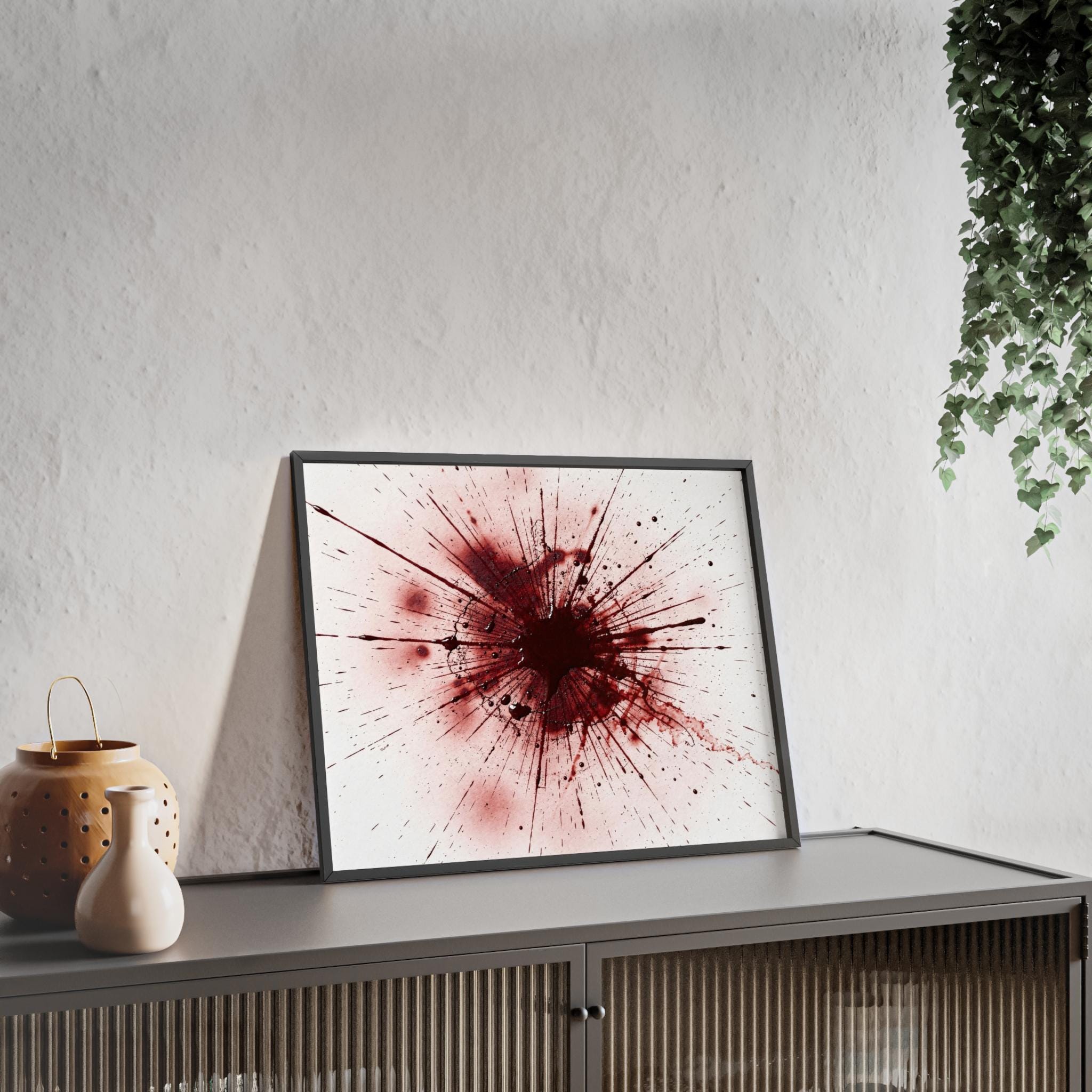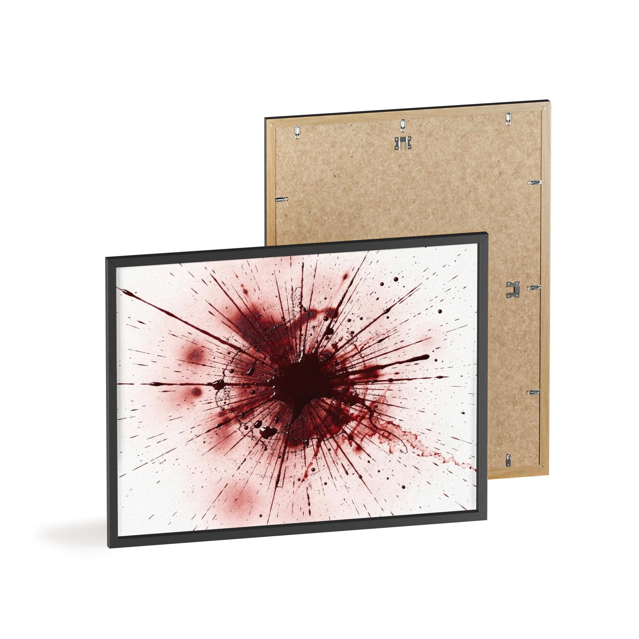 Framed Blood Splatter Wall Art – Gothic Abstract Print in Black Wood Frame