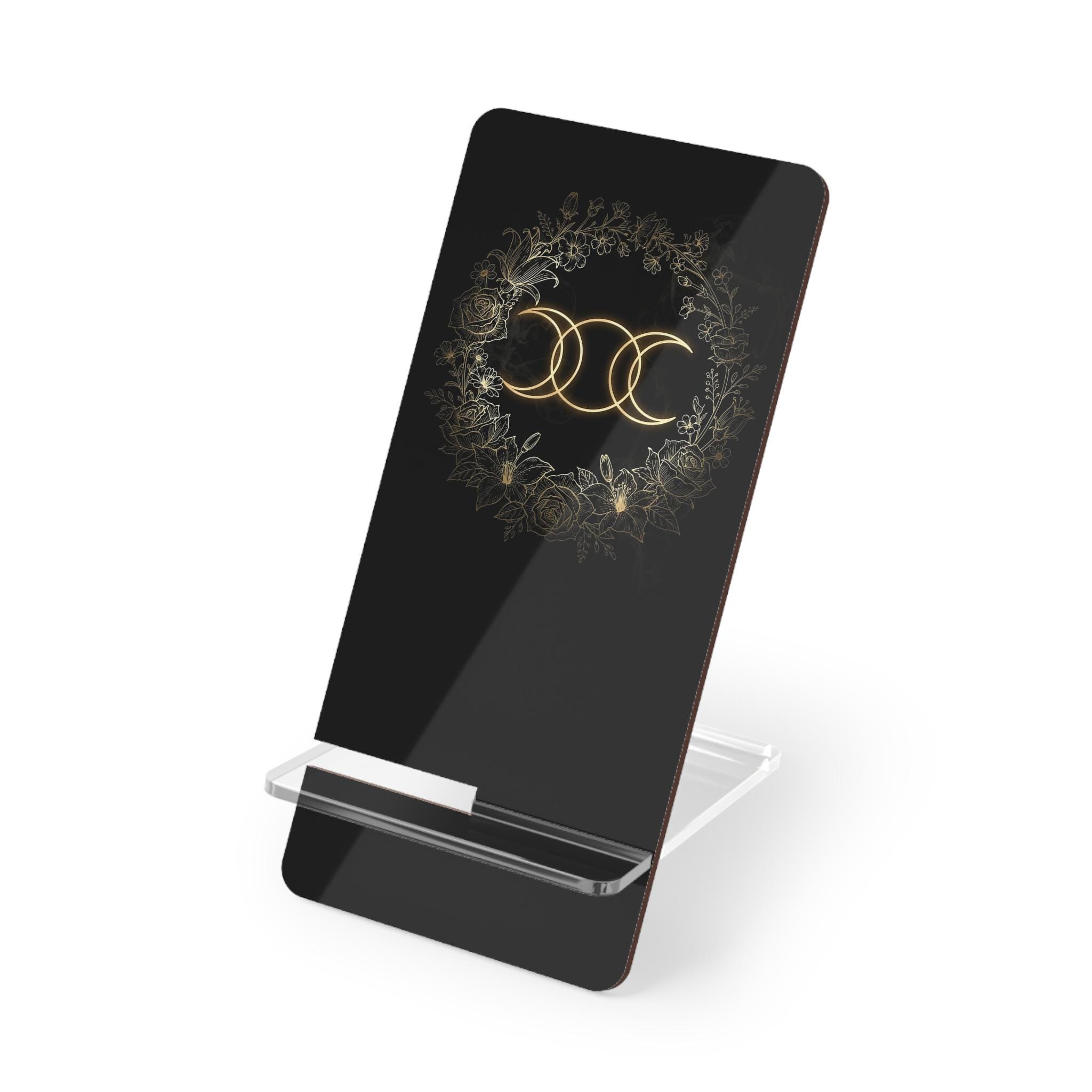 This phone stand blends witchcraft symbolism, elegant gold accents, and dark mystique into a functional piece that elevates any space.